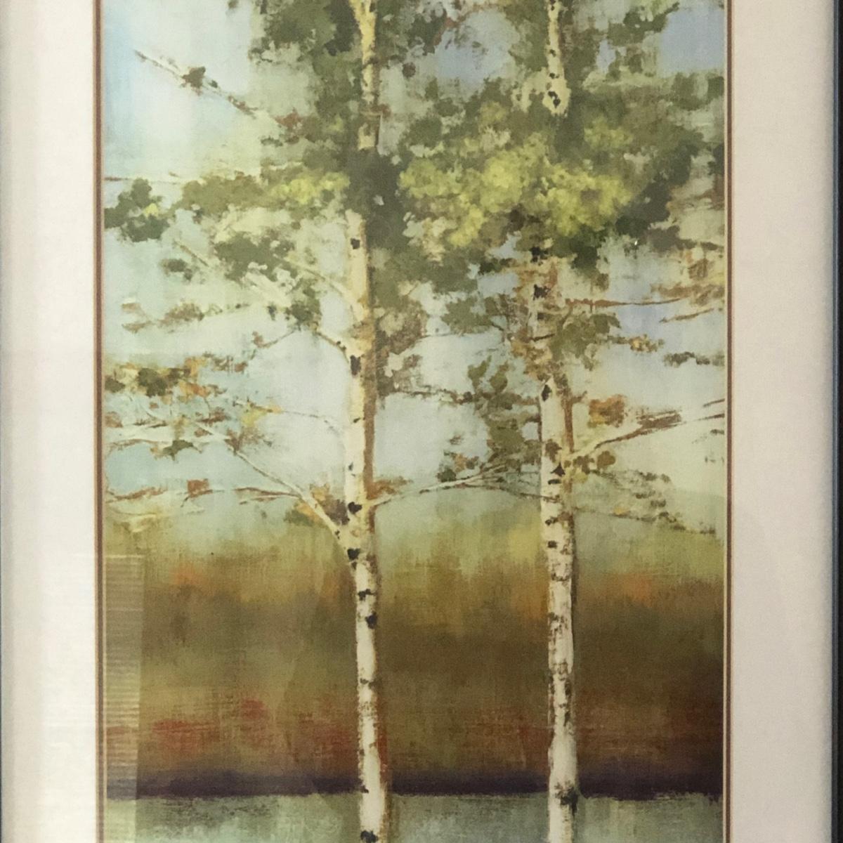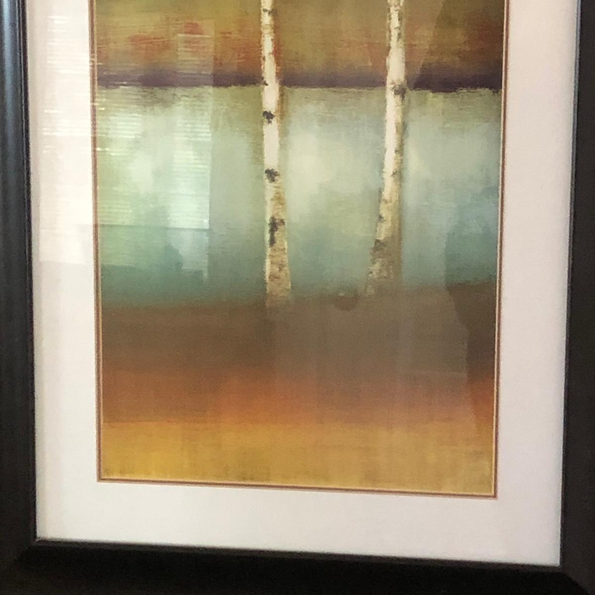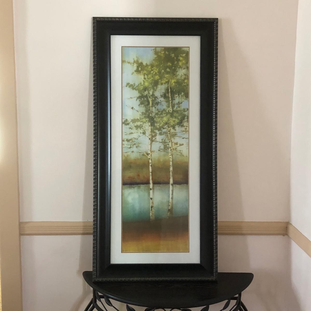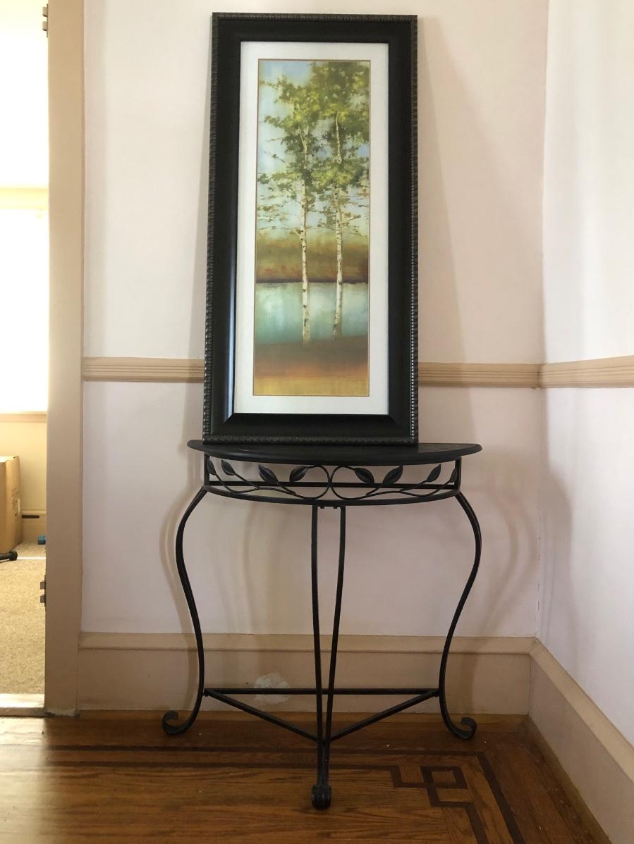 LOT 137M: Half-Circle End Table & Framed Allison Pearce "Swaying Along II" Print
