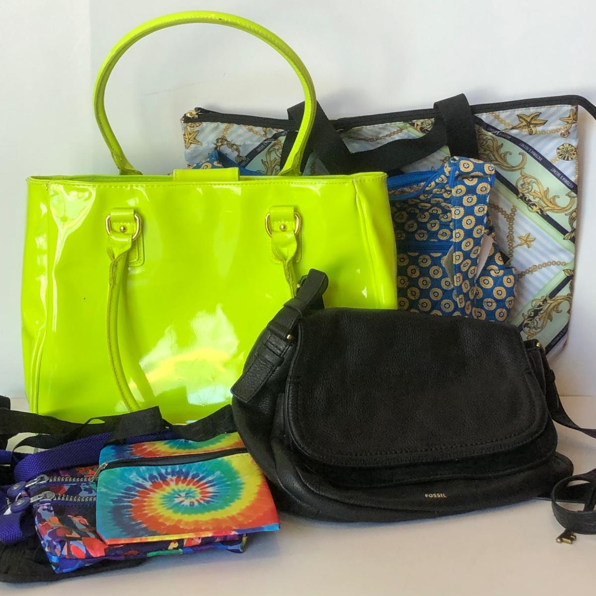 Also includes a fluorescent green bag, and three small hip/cross body bags.