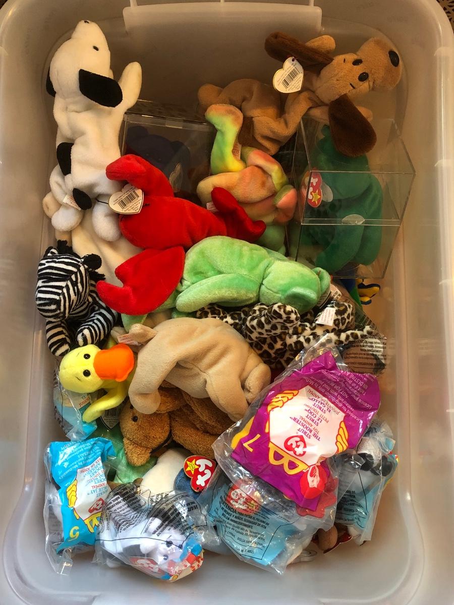 This tub is mostly TY beanie babies with a few extras thrown in. Includes beanie baby McDonald's toys.