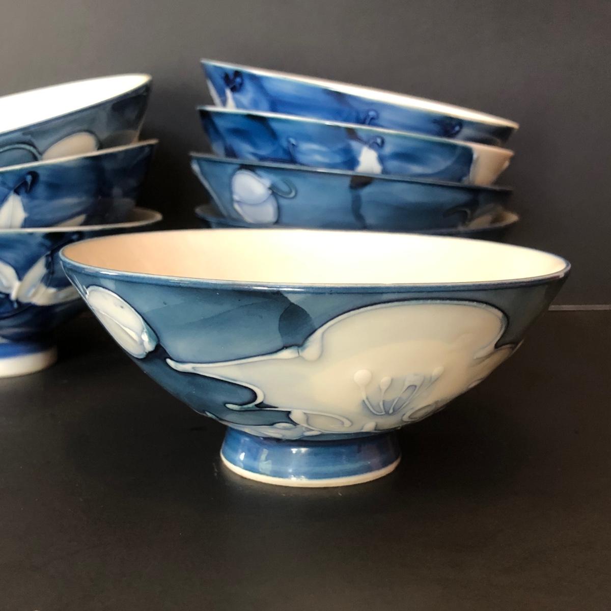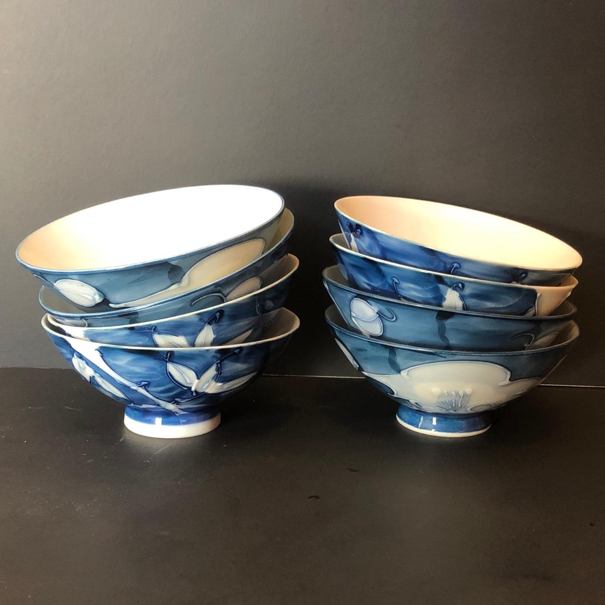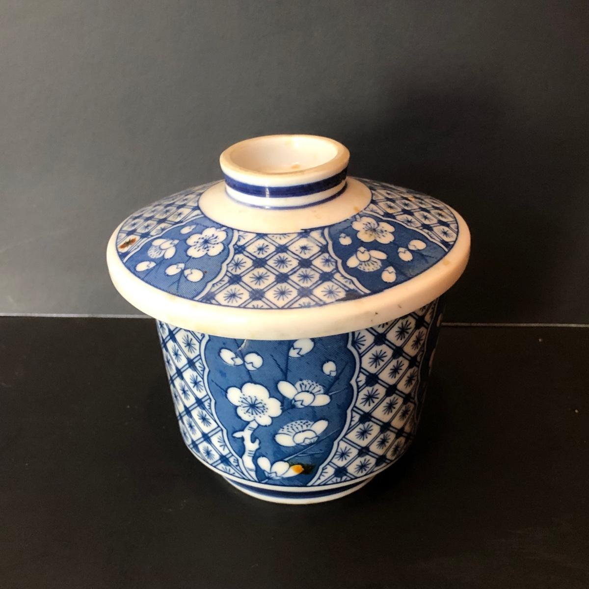 Includes a matching plate and bowl, six rice/soup bowls, a lidded jar, a tea pot, another bowl and lotus flower bowls.