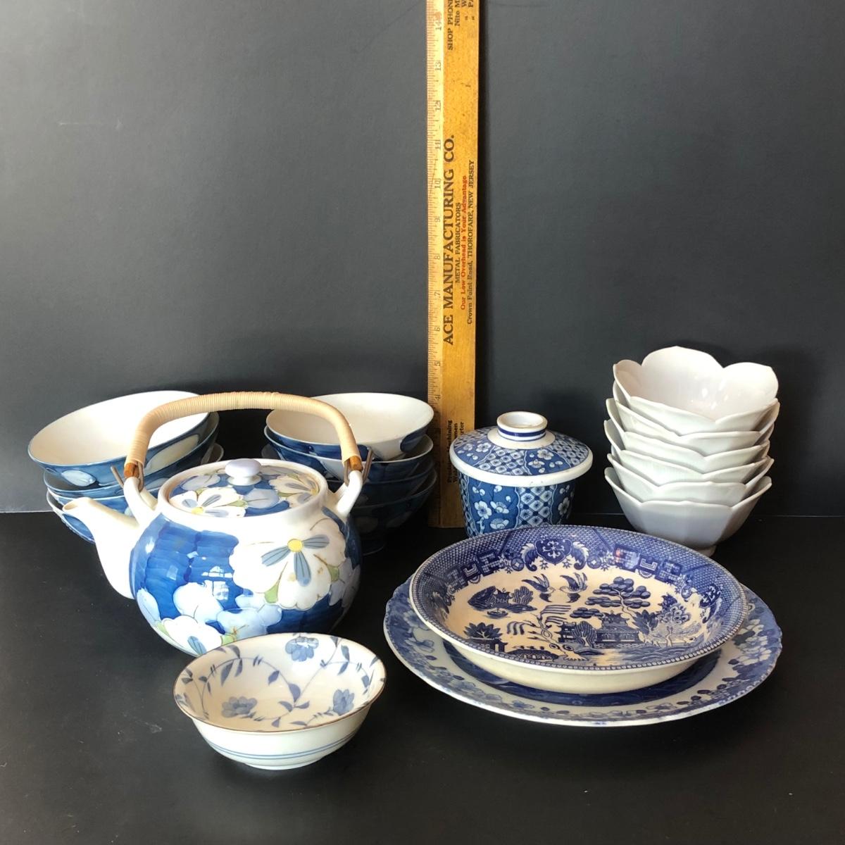 LOT 148M: Blue & White Made in Japan Dishes - House of Blue Willow, Maruta & More