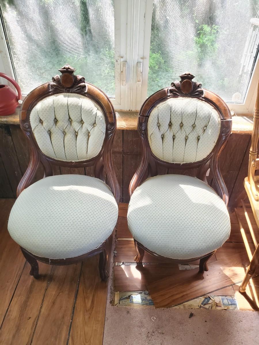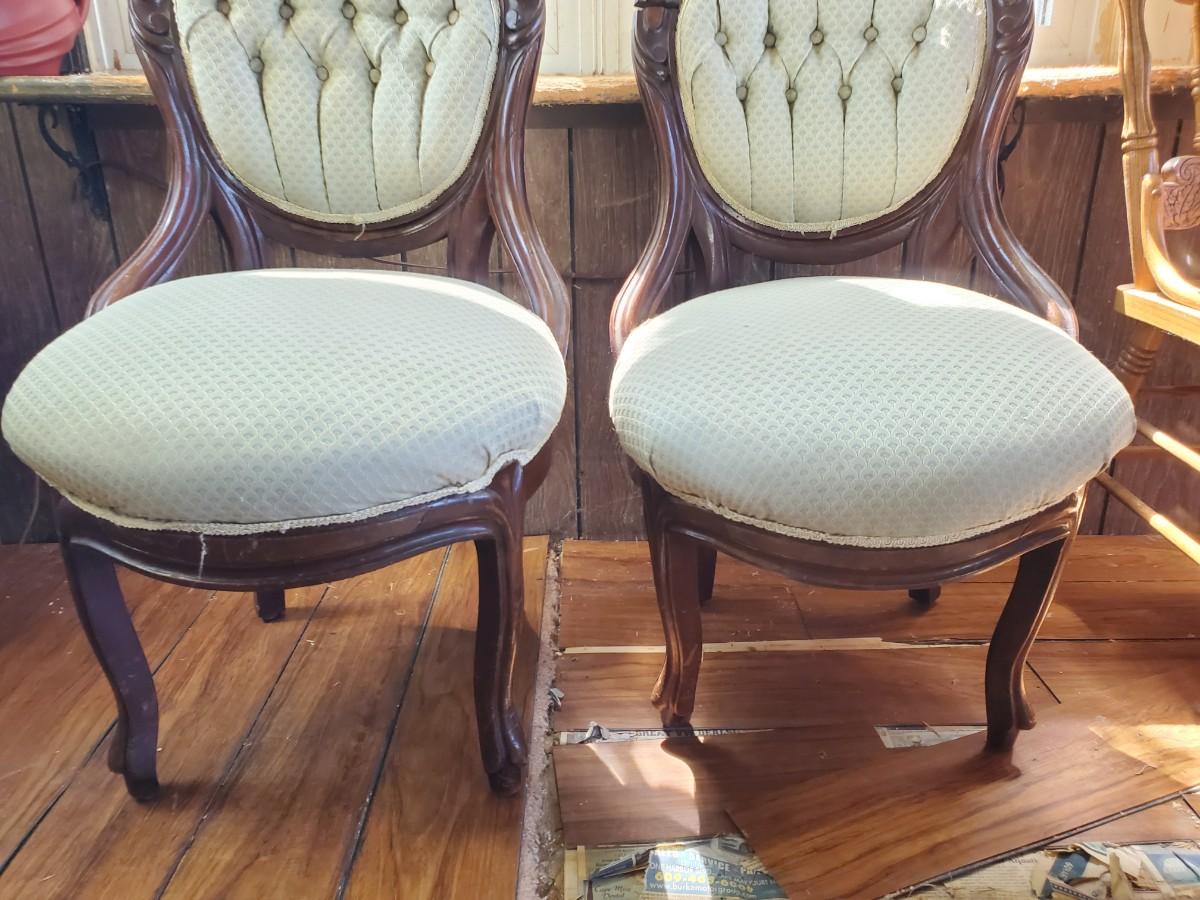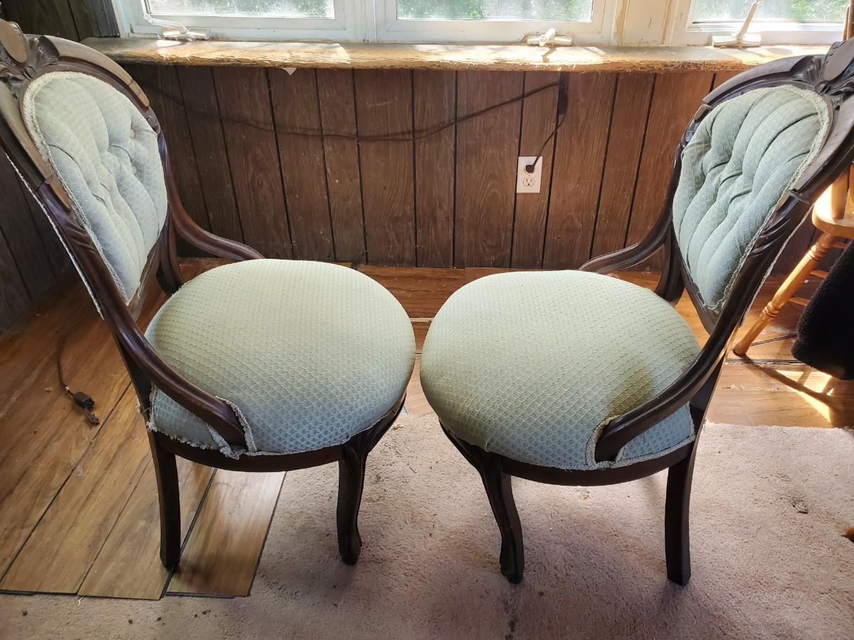 LOT 26: Vintage Pair of Victorian Style Chairs: Light Blue