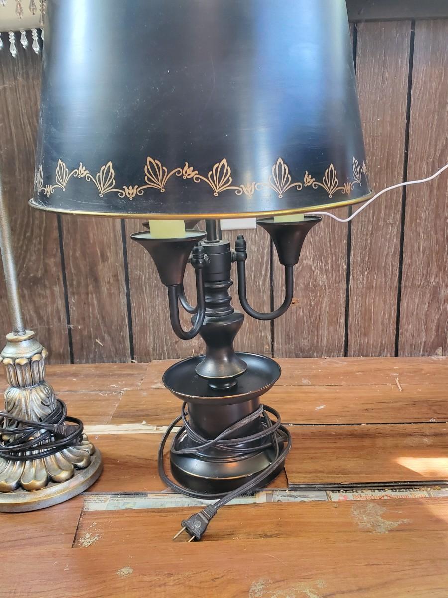 LOT 71: Black Metal Desk Lamp w/Matching Metal Shade & Tall Accent Lamp