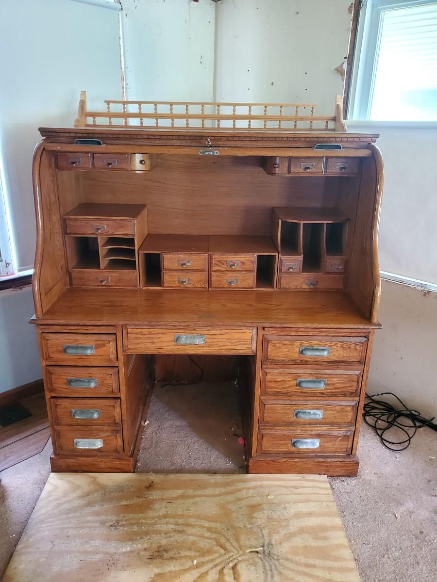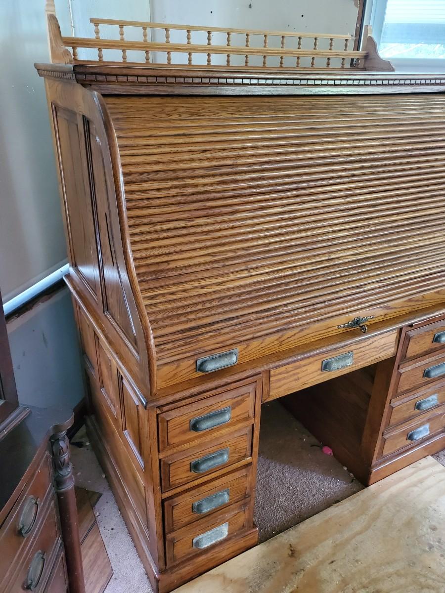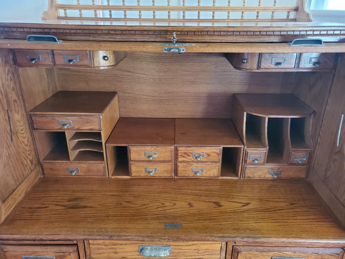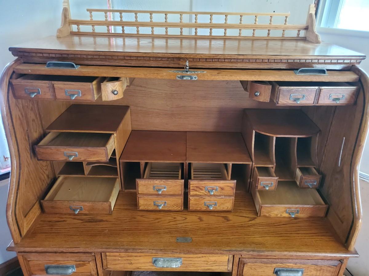 LOT 90: Roll Top Desk, Finds Furniture Company w/Key