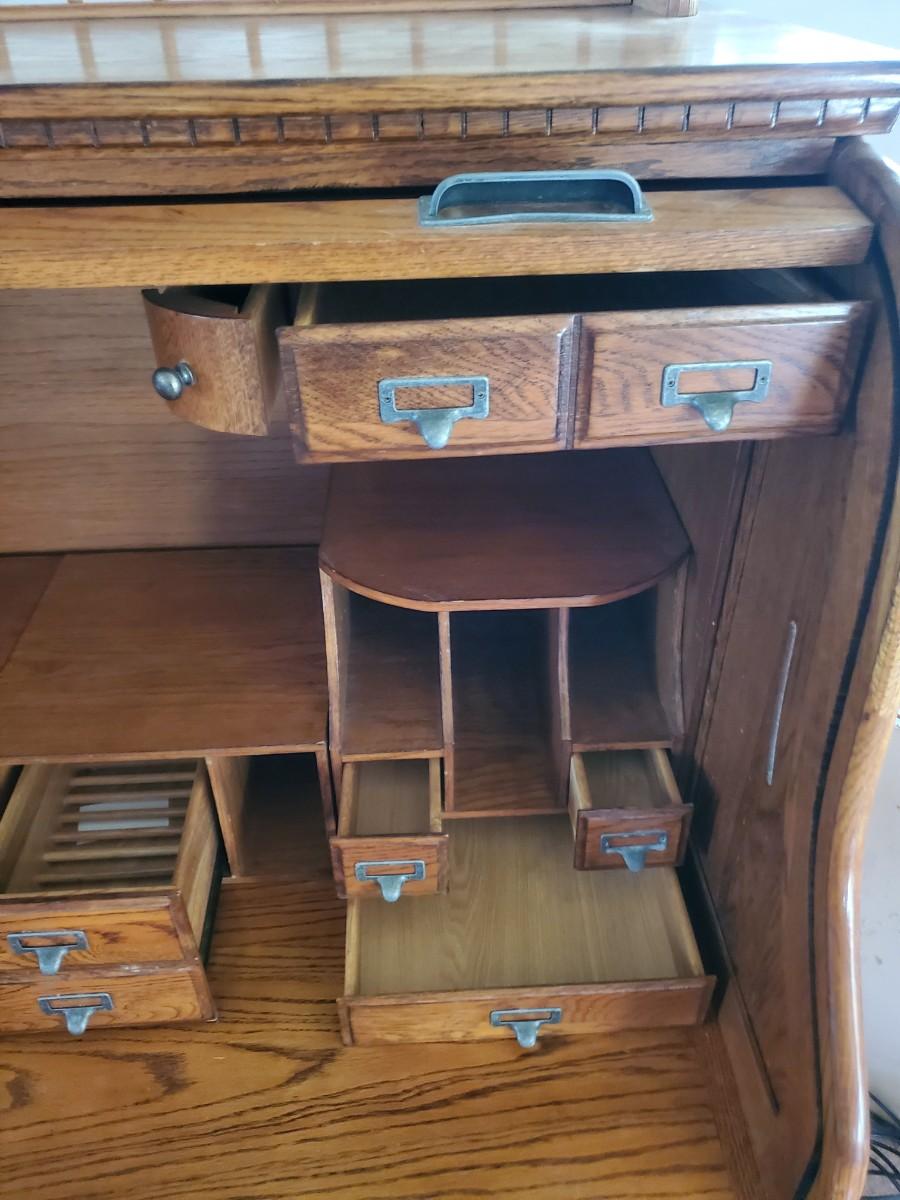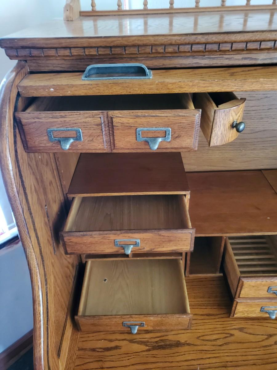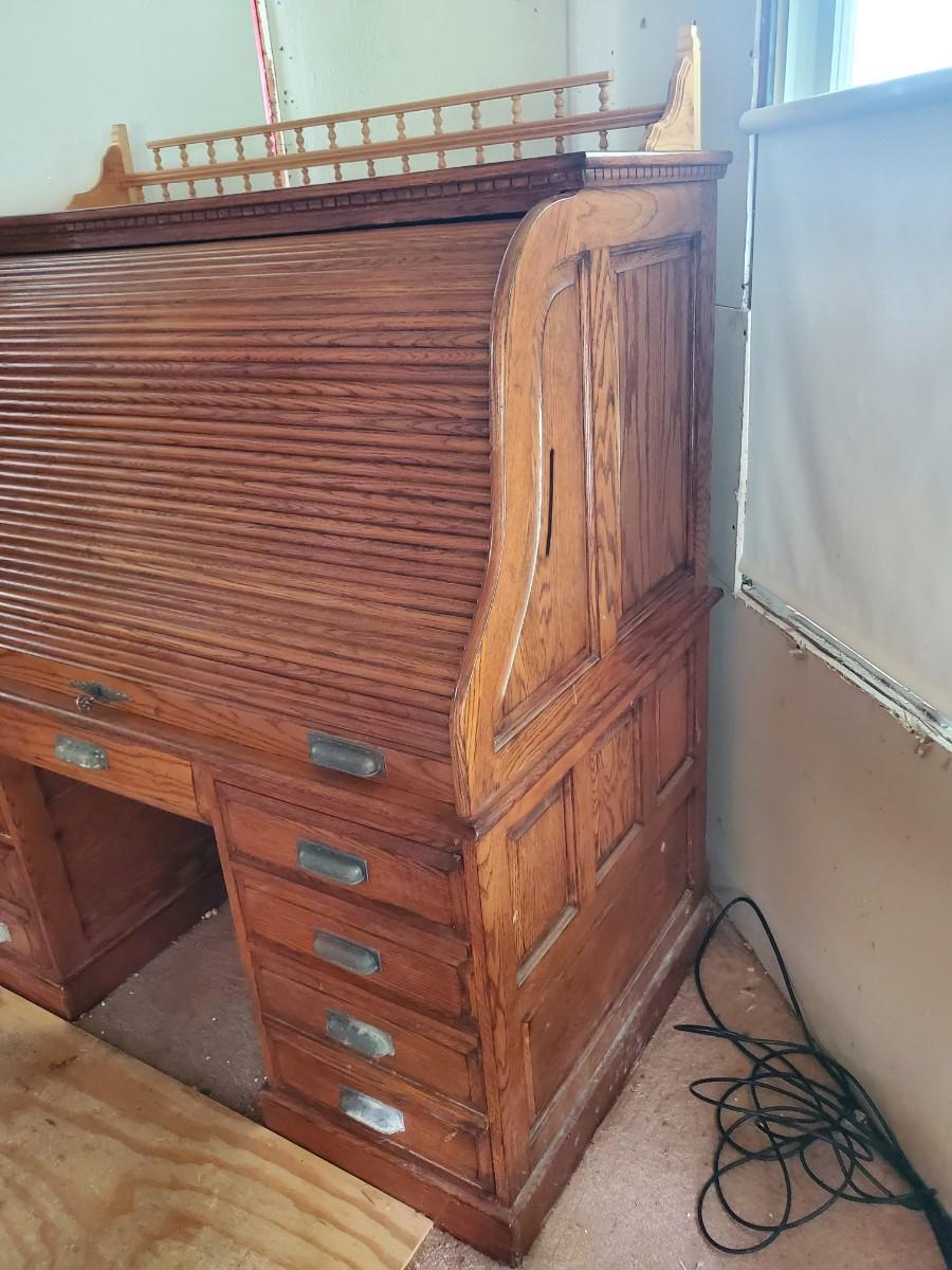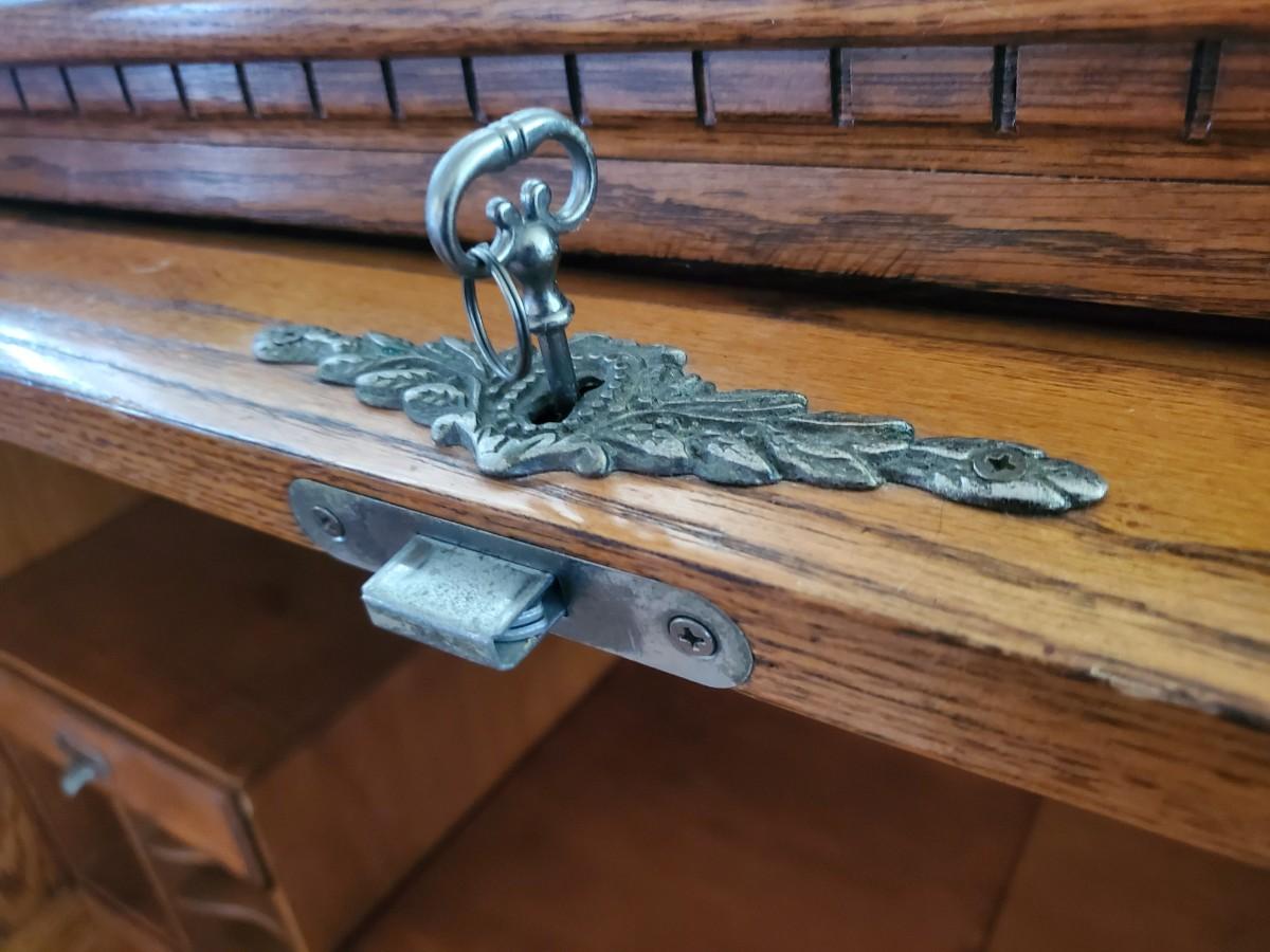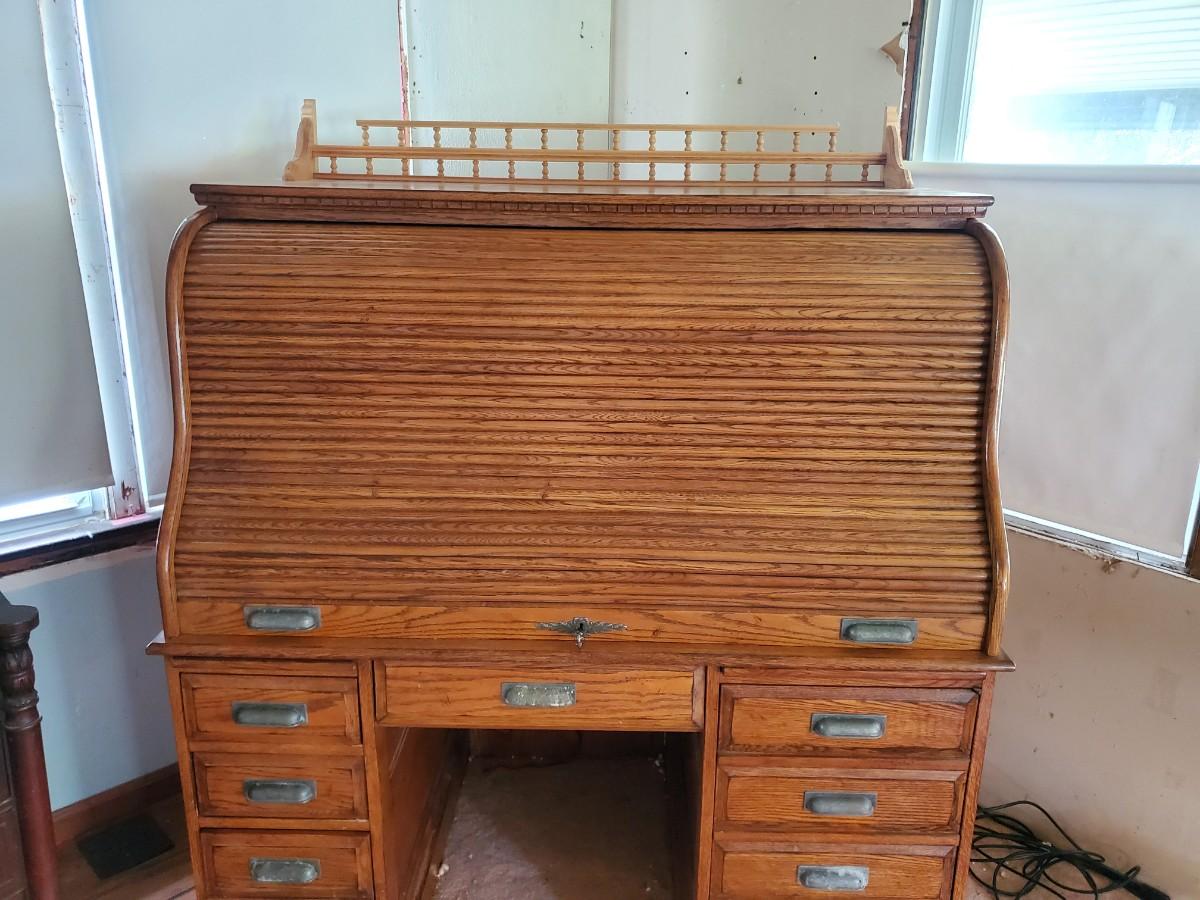 LOT 90: Roll Top Desk, Finds Furniture Company w/Key