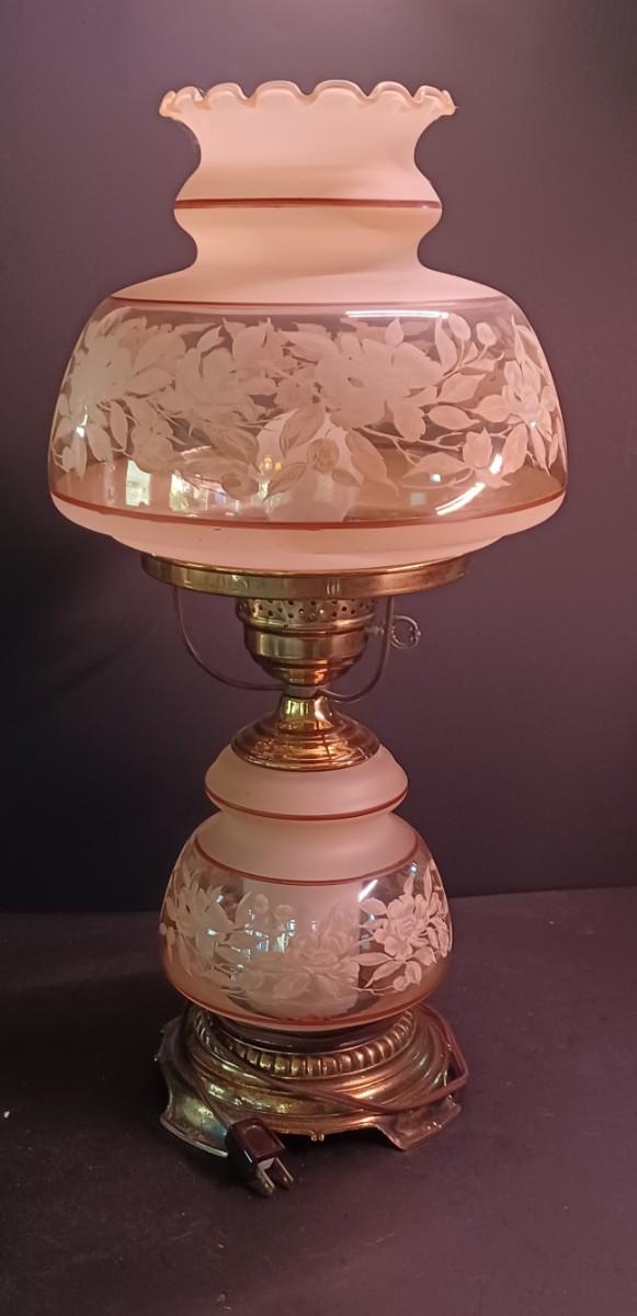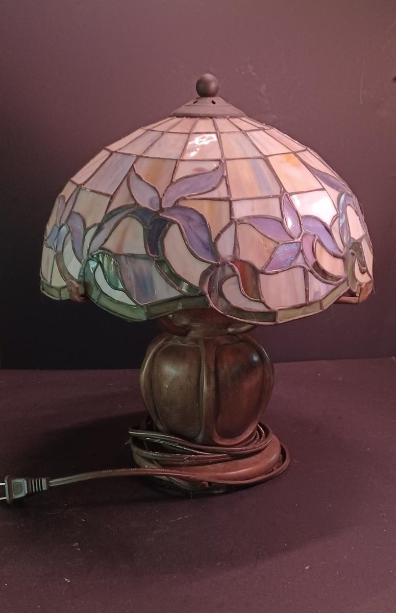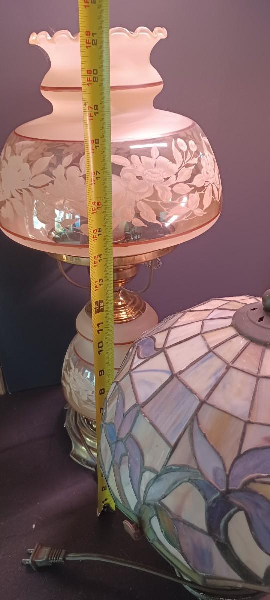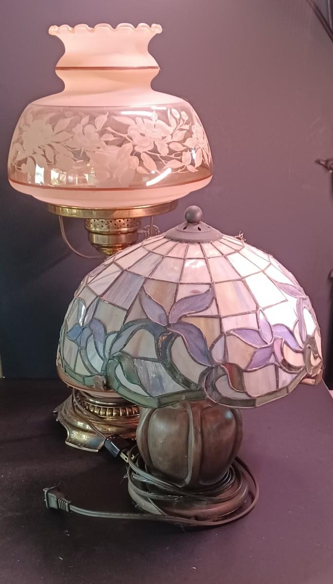 LOT 121: Stained Glass Lamp & Hurricane Style Glass Lamp