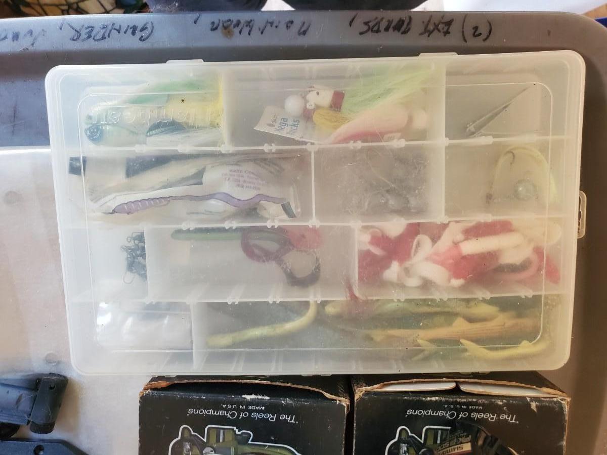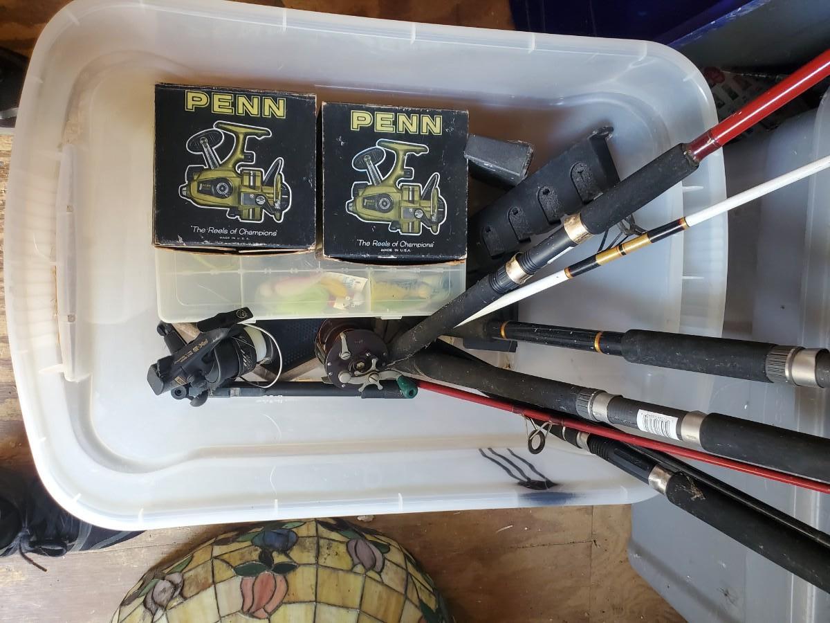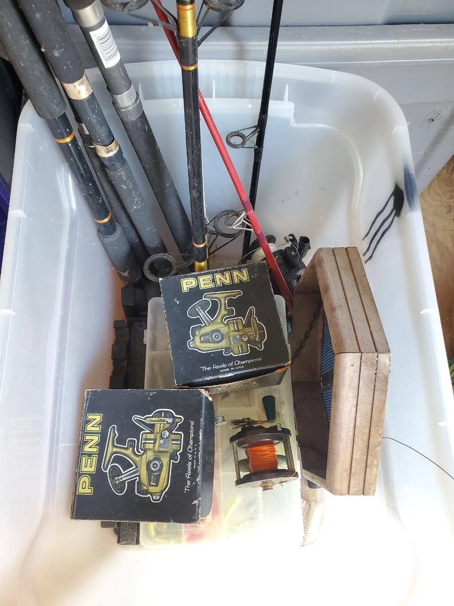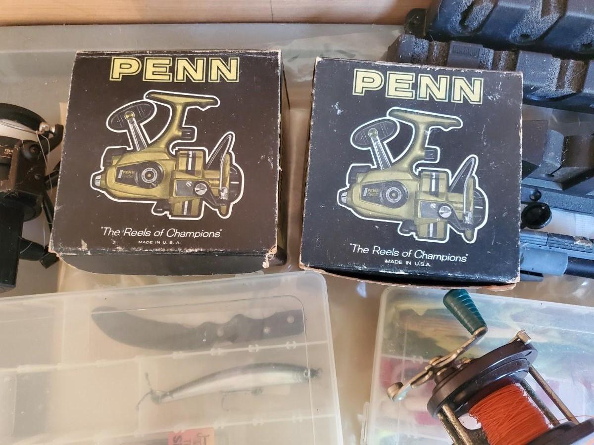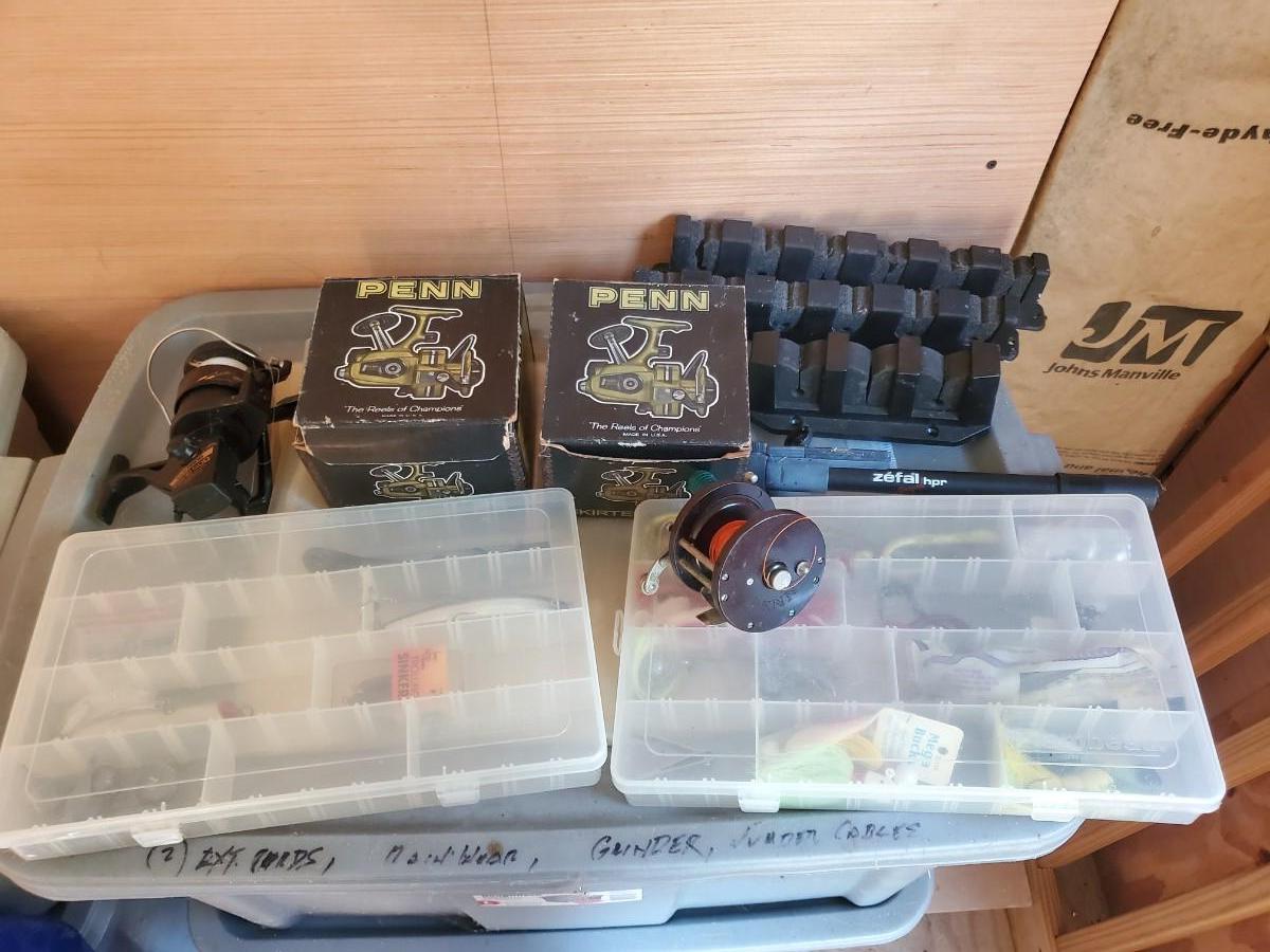 LOT 124: Penn Fishing Reels, Tackle Boxes & Fishing Poles