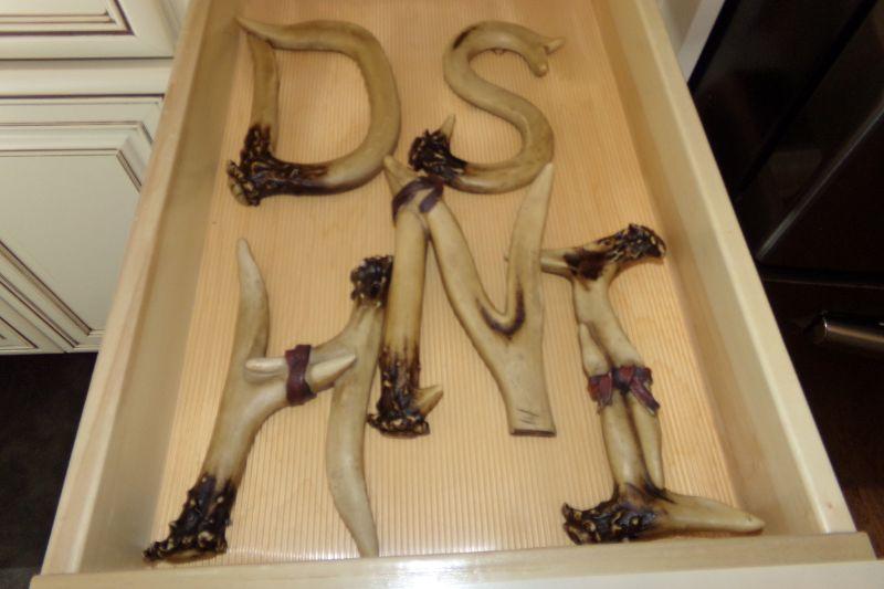 LOT 85A KITCHEN UTENSILS AND FAUX ANTLER LETTERS