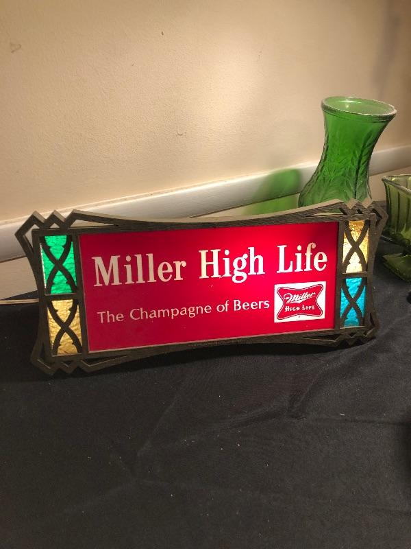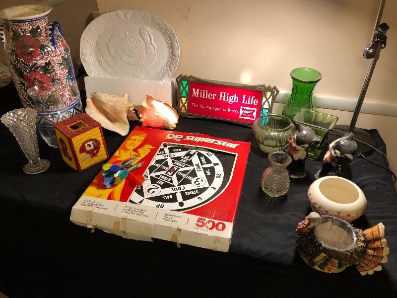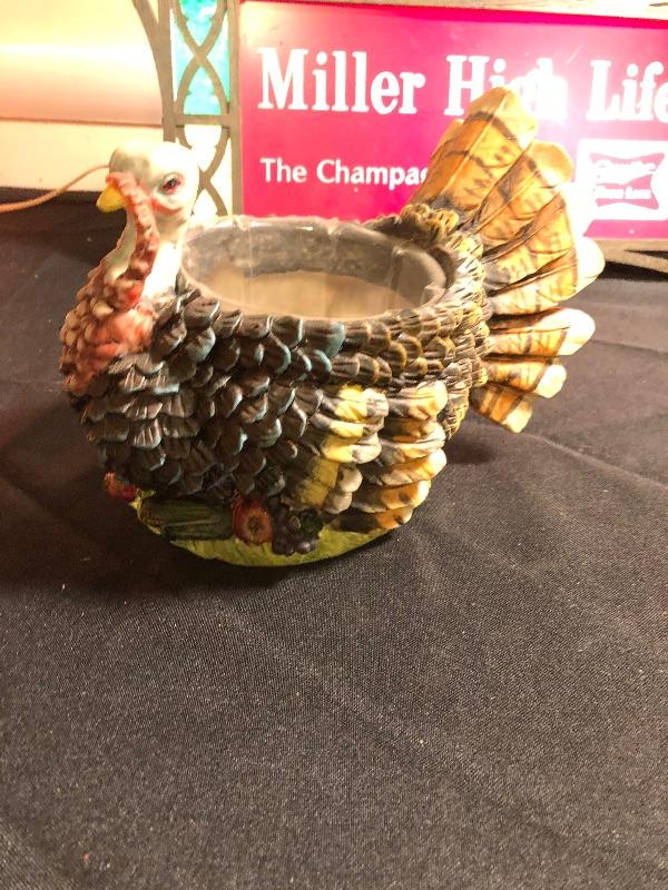 Lot 92- Turkey Serving Tray, Miller High Life Lit Sigh, Large Vase, Planters, Various Vases