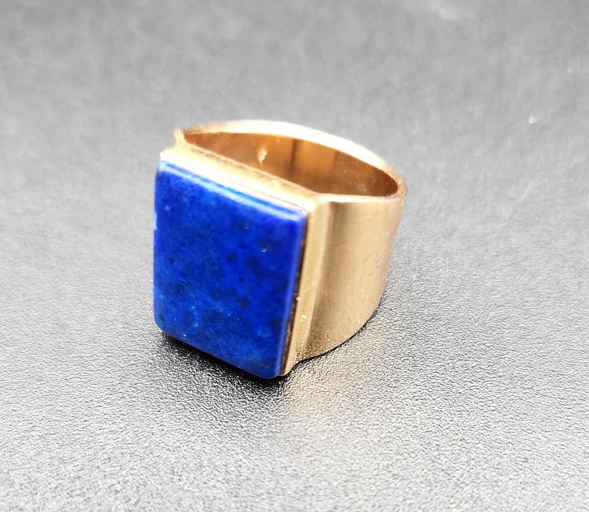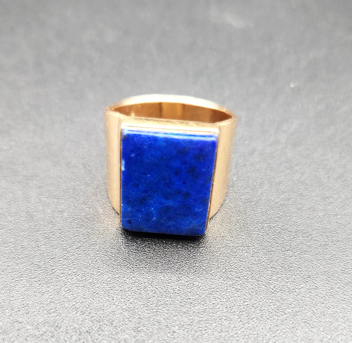 Lot #86 14kt Yellow Gold & Lapis Men's Ring - size 8