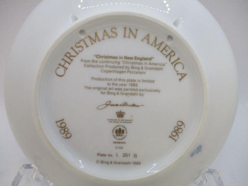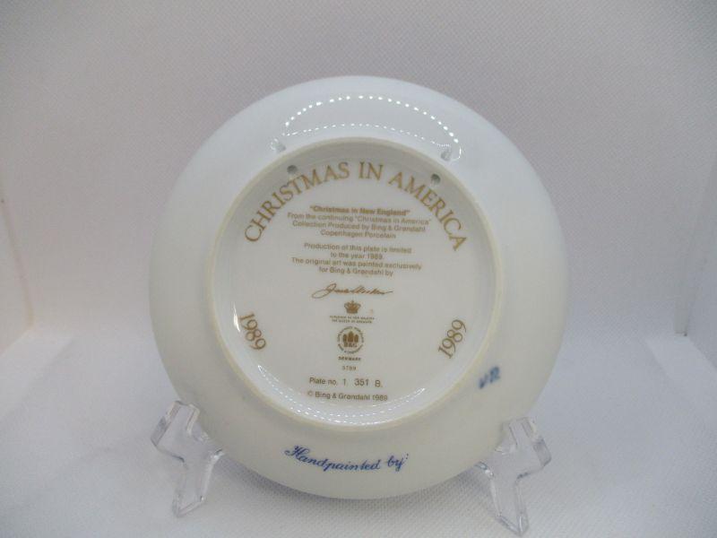 This is part of the Christmas in America series by Bing and Grondahl. This one is "Christmas in New England". Just shy of 5.25" in diameter and no issues found. Stand is not included.