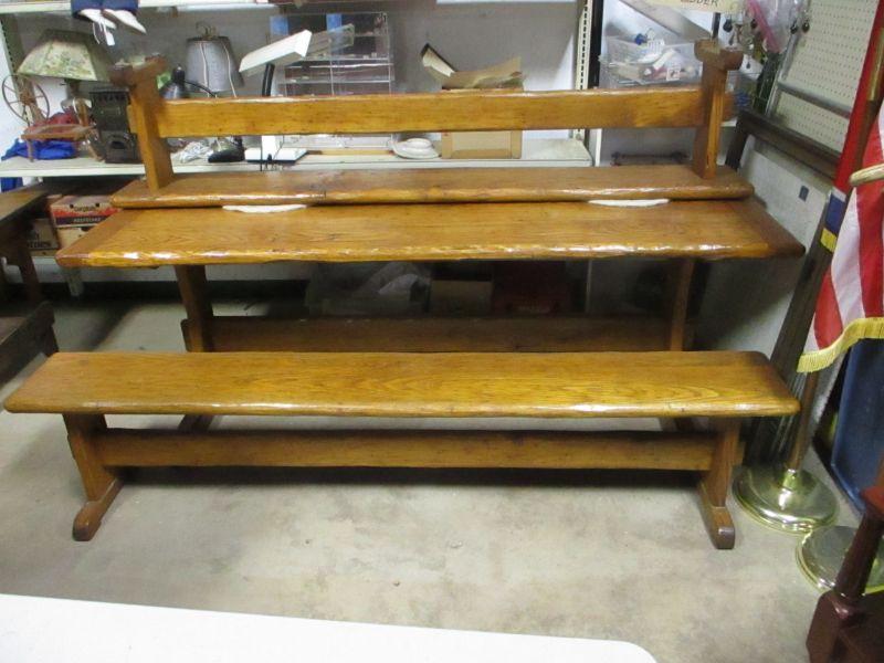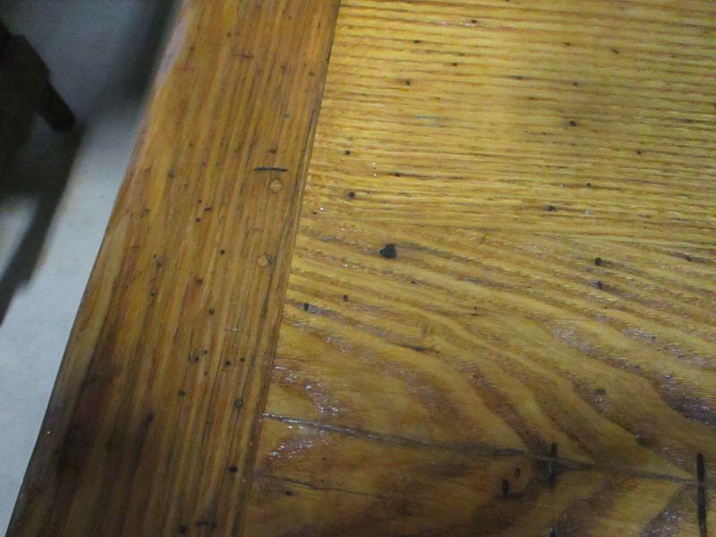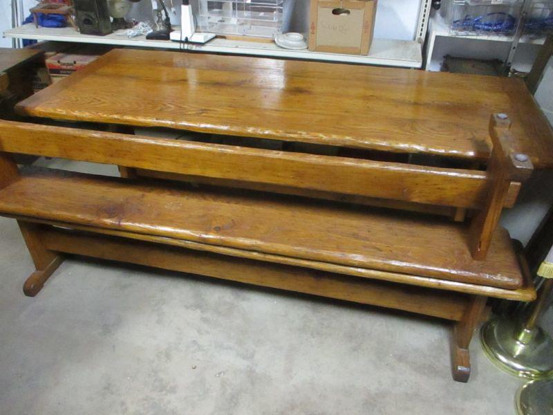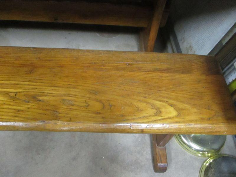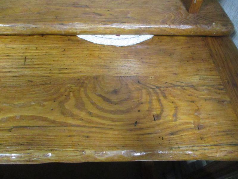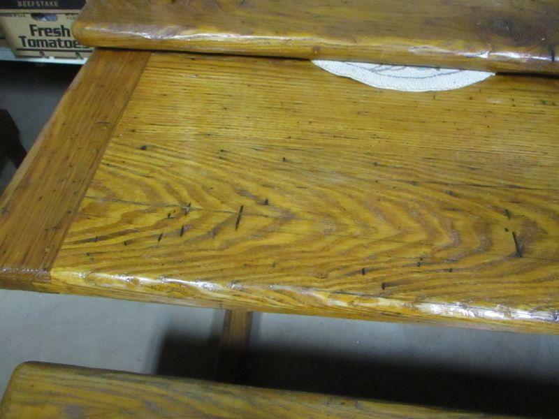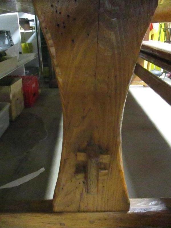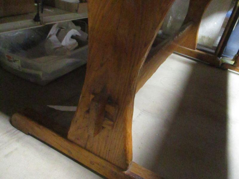 Lot 86 - Rare! Vintage Wormy Chestnut Trestle Farm Table Pennsyvania Amish Peg Construction with Bench Seats