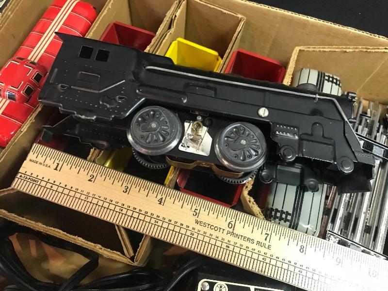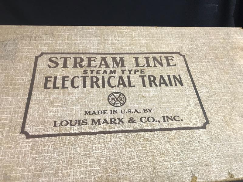 Vintage Marx Stream Line Electric Train Set In Original Box. Please see all pictures for content of the lot, condition of the lot, and measurements if taken. Pictures are the best representation of the items listed and items are untested unless indicated in description. Thank you for looking and have fun bidding!