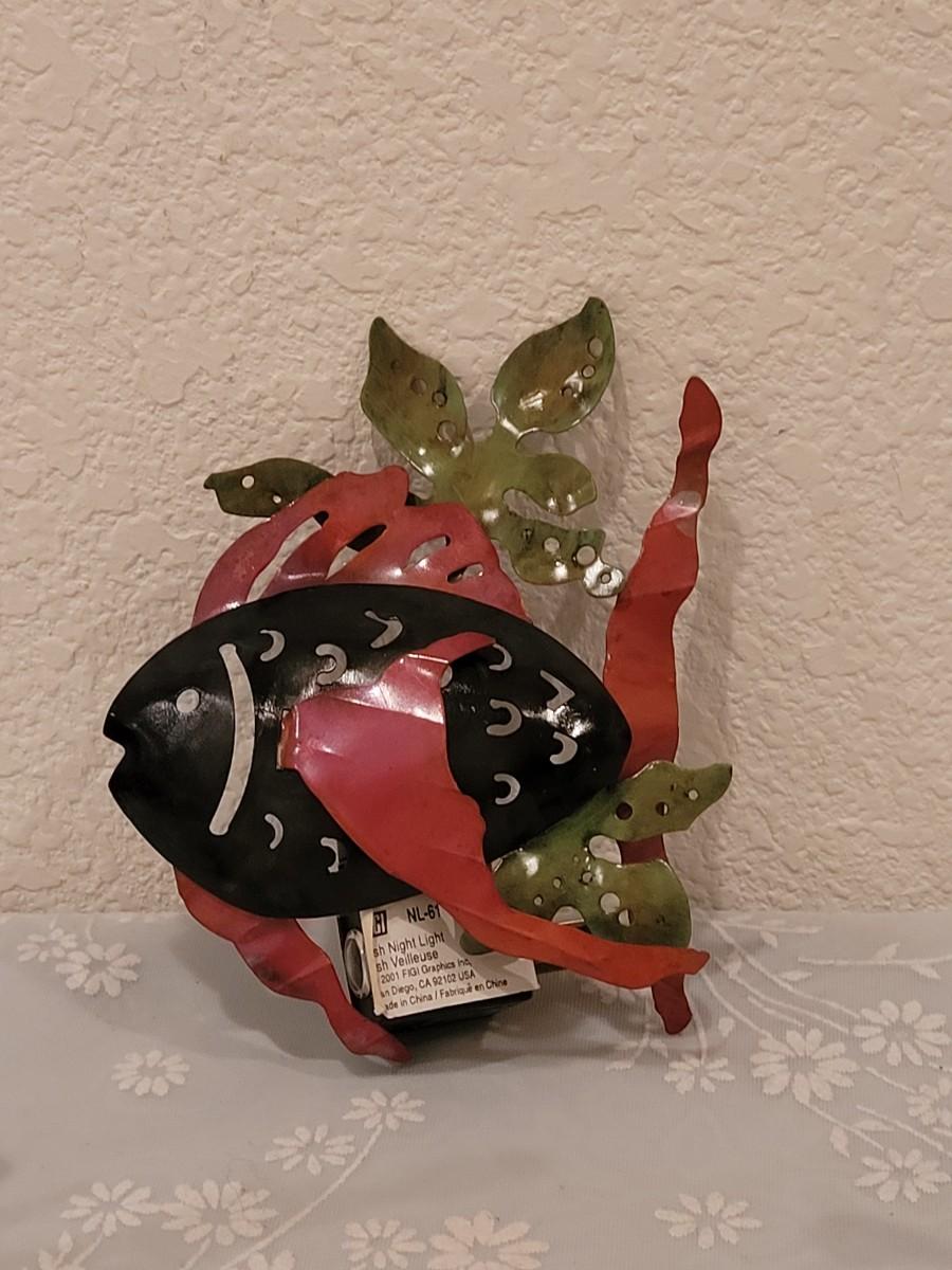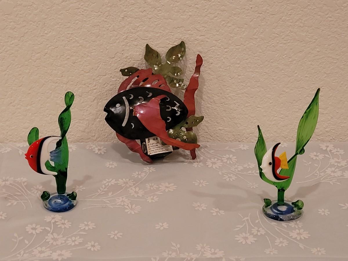 Lot 86: Metal Fish Nightlight and 2 Glass Fish Deco