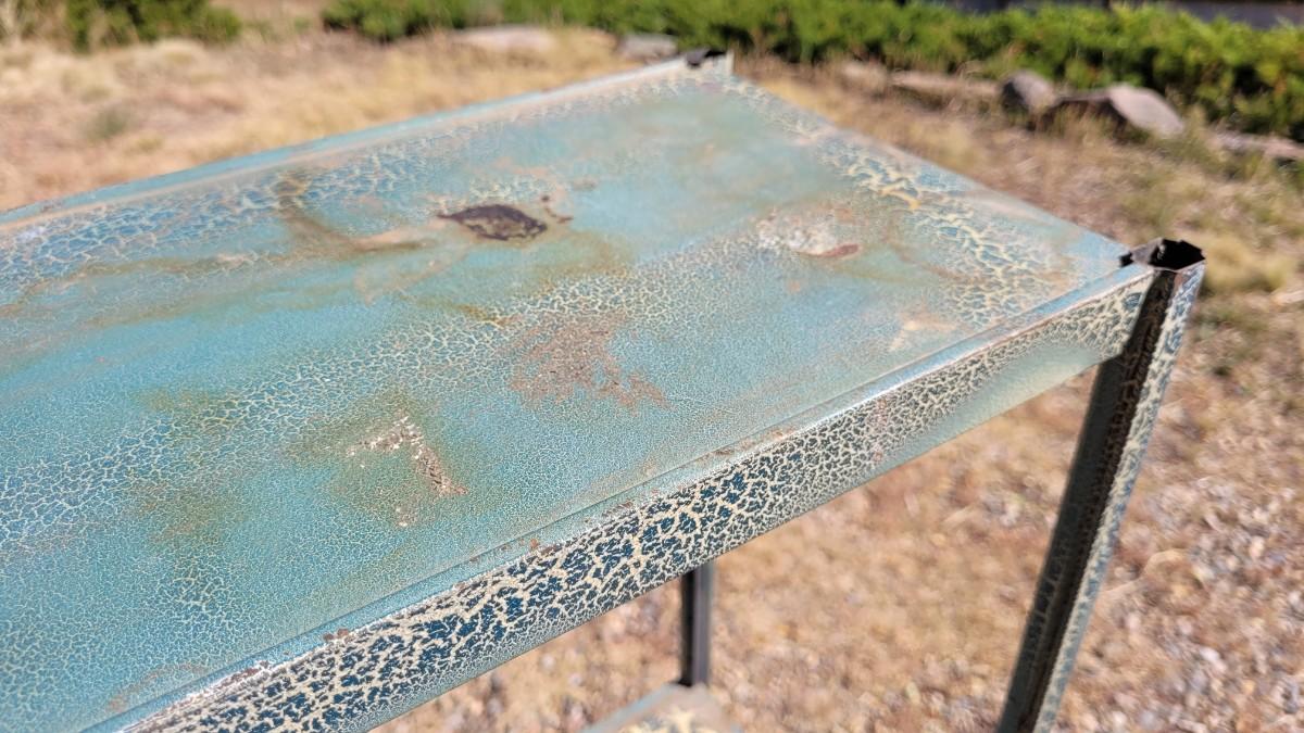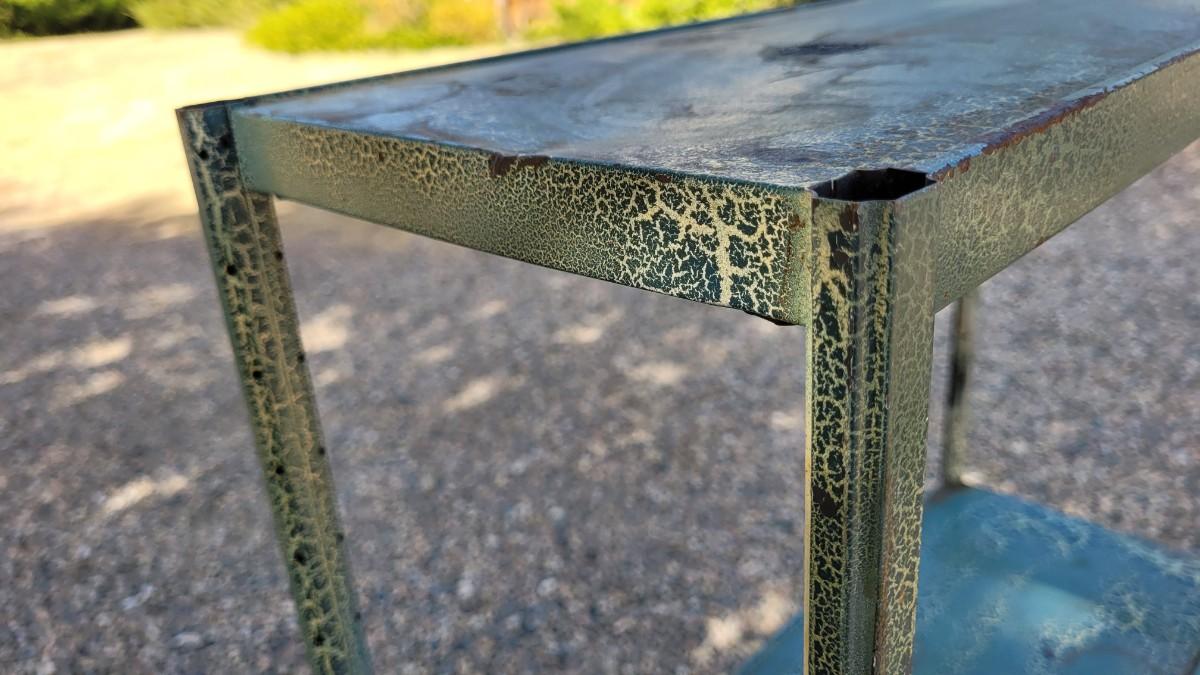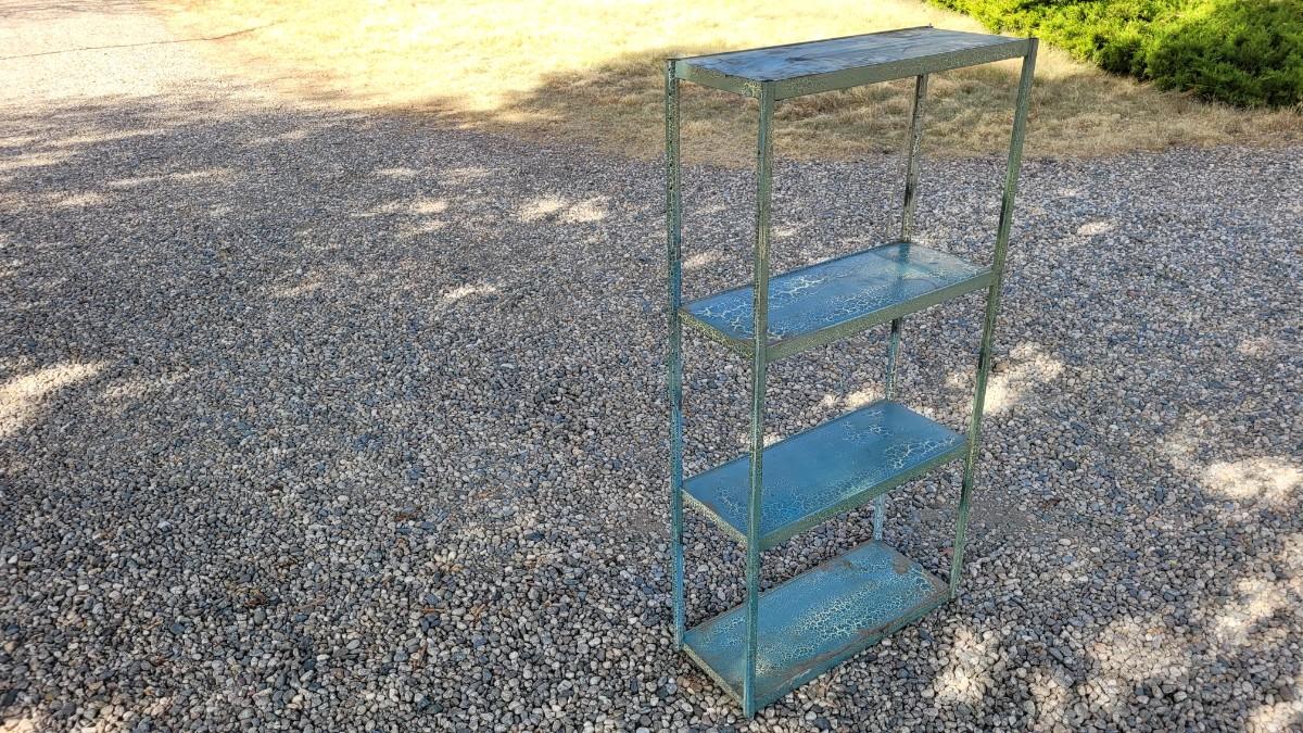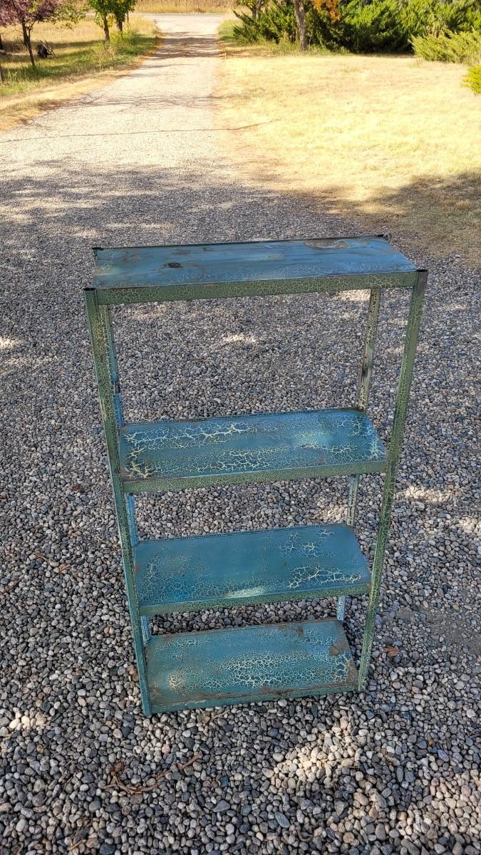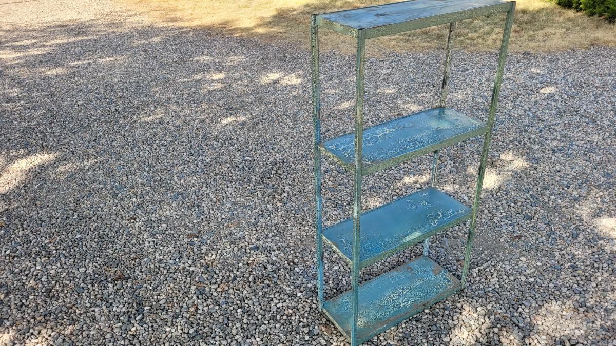 Lot 86: Vintage Authentic Crackle Paint Metal Storage Shelf