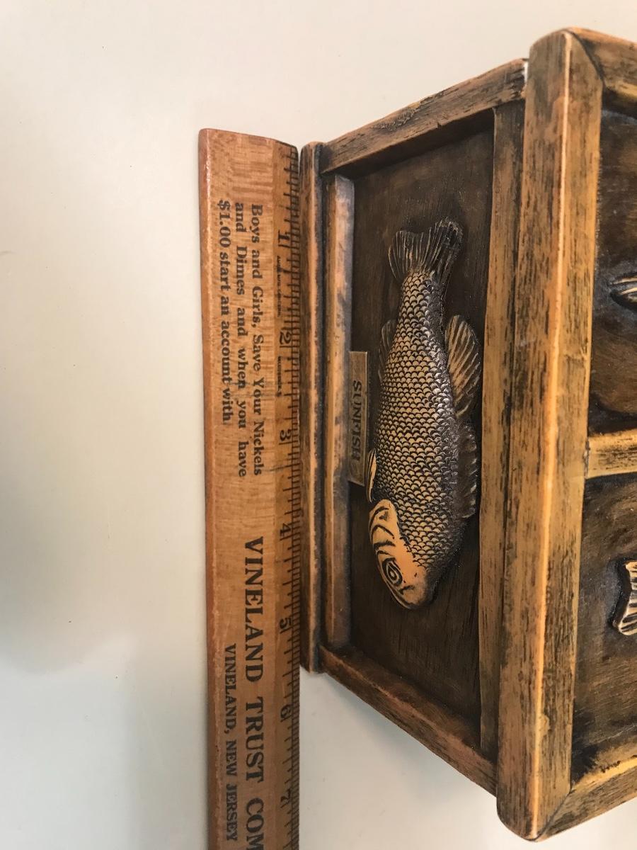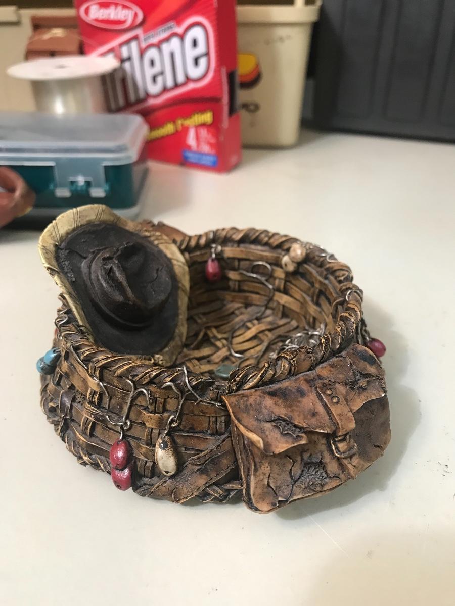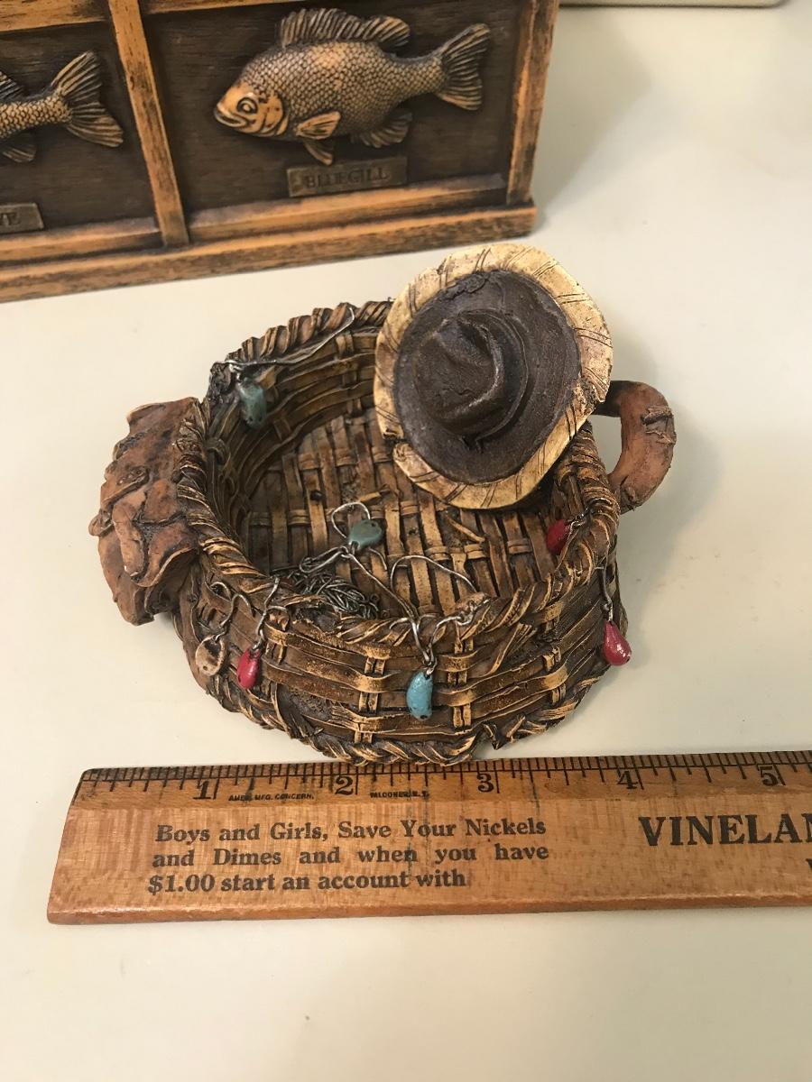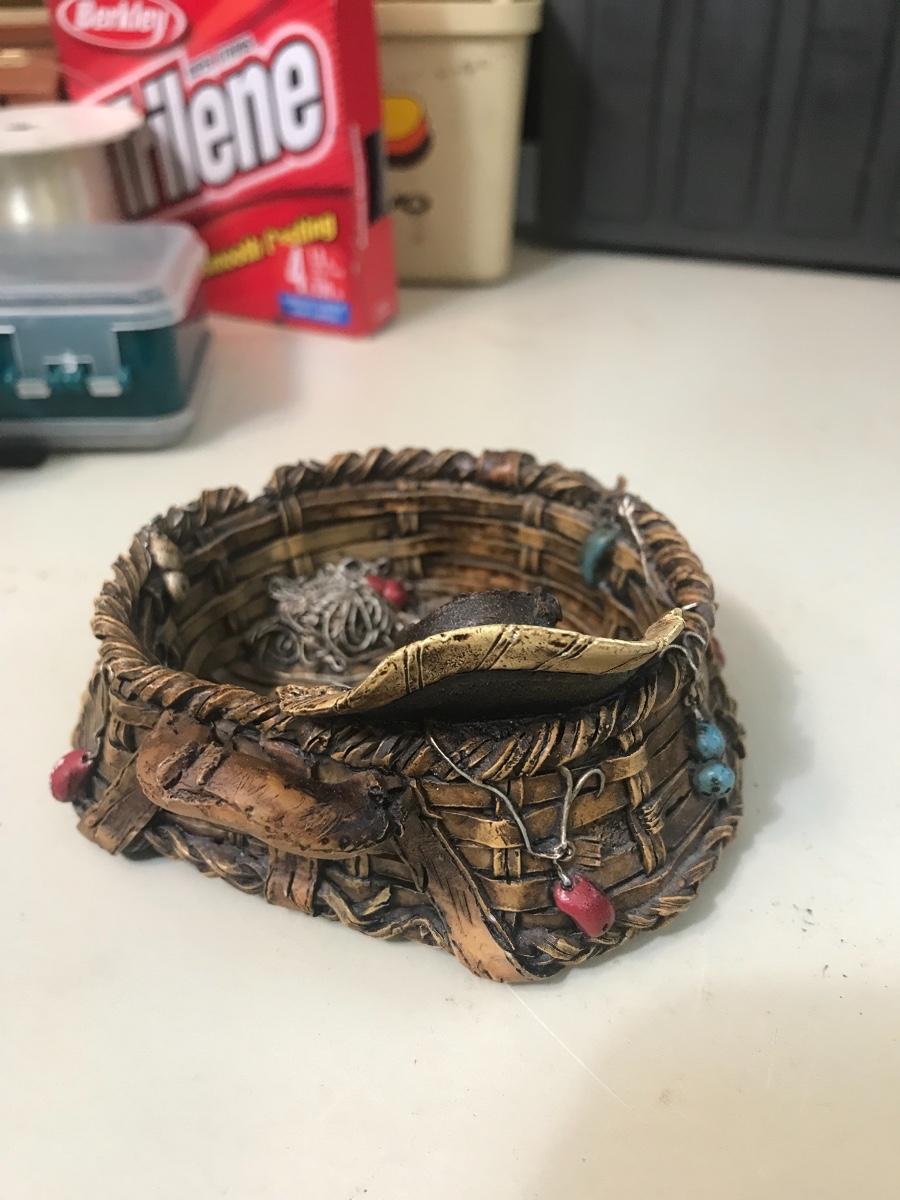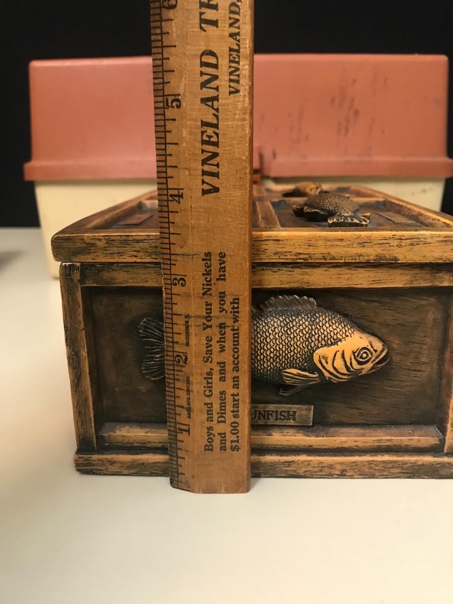 Fishing Gear And Decor- Tackle Boxes, Reels & More - Heavy ceramic decorative fish species box and trinket dish.