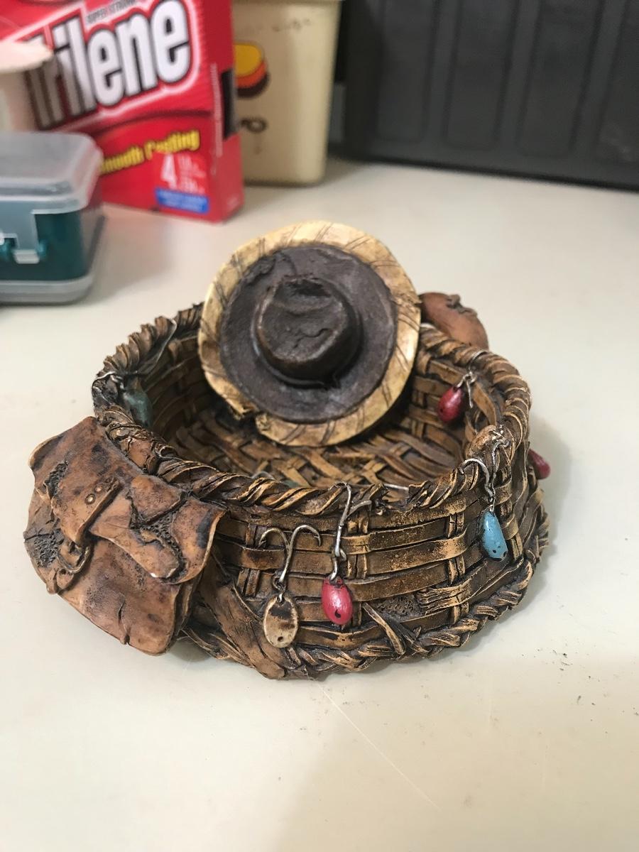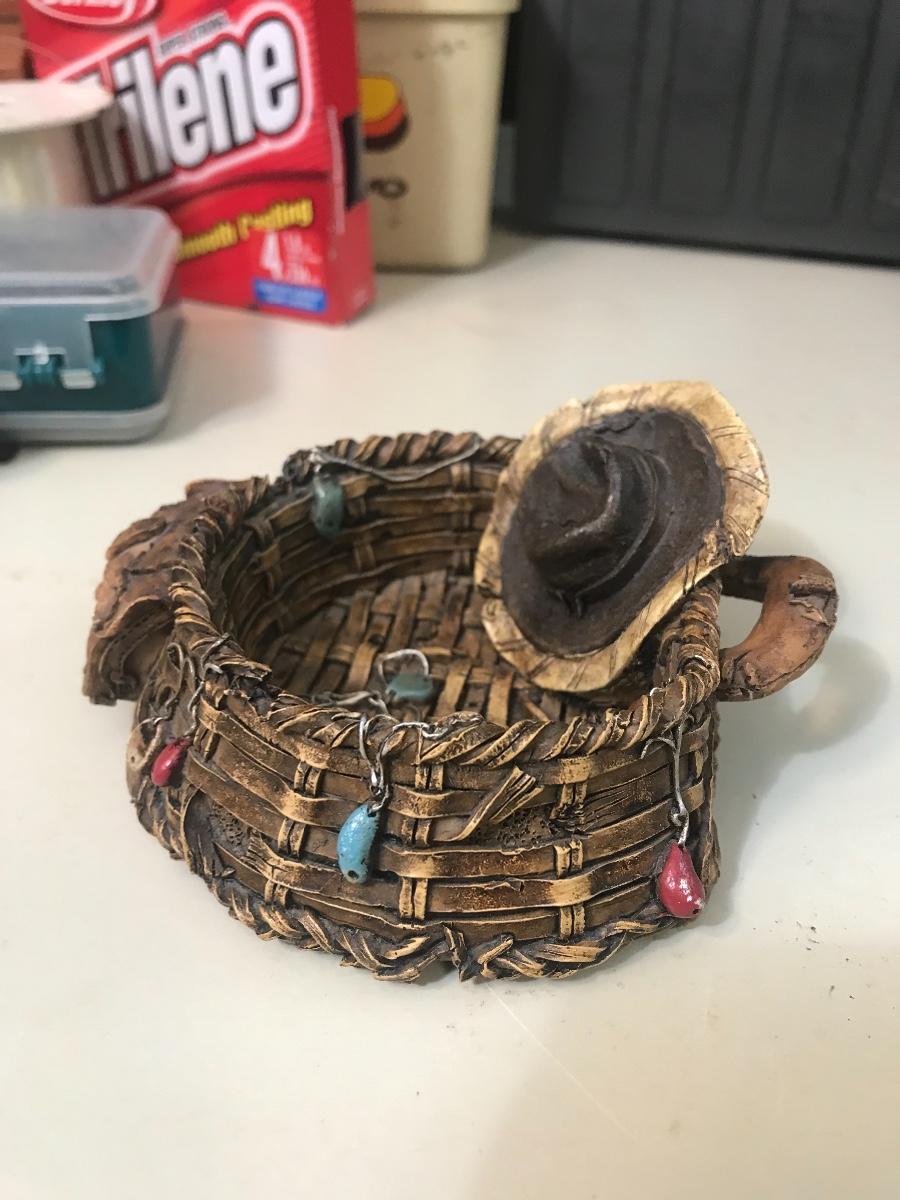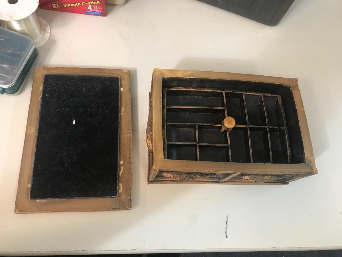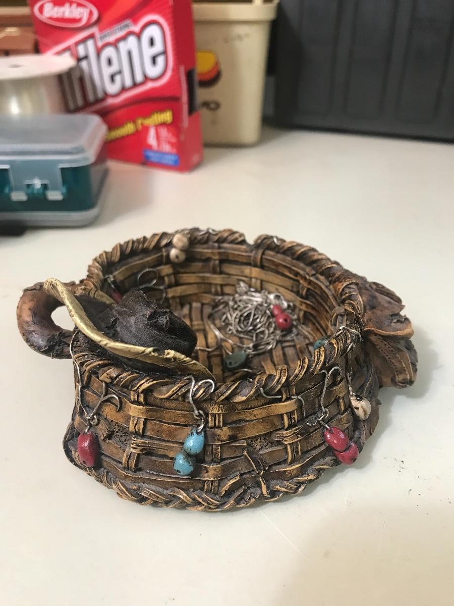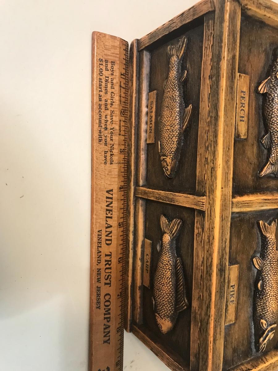 Fishing Gear And Decor- Tackle Boxes, Reels & More - Heavy ceramic decorative fish species box and trinket dish.