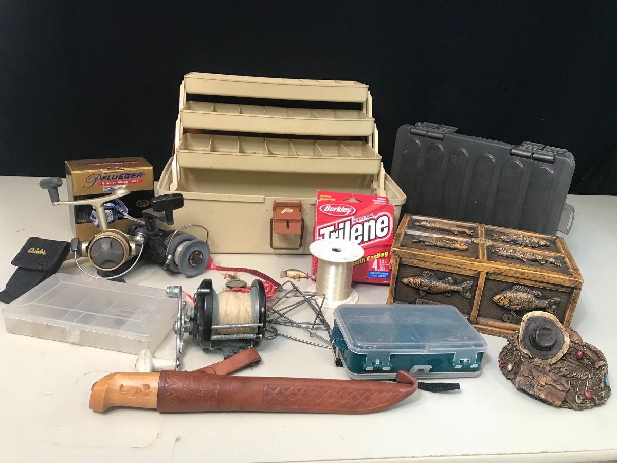 Lot 86:  Fishing Gear And Decor-  Tackle Boxes, Reels & More