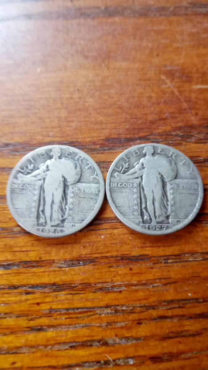 LOT 86 TWO OLD SILVER STANDING LIBERTY QUARTERS