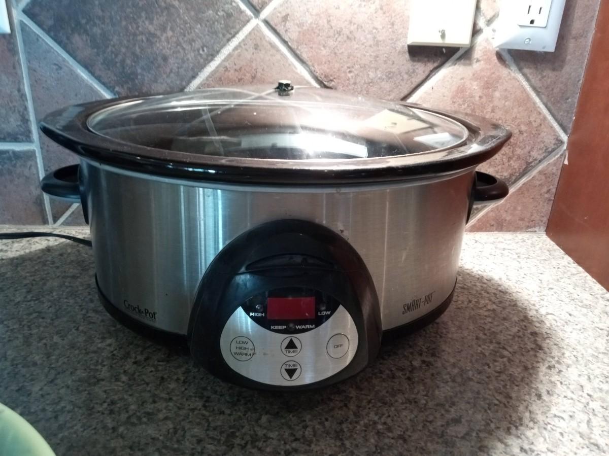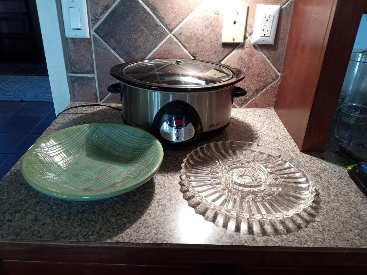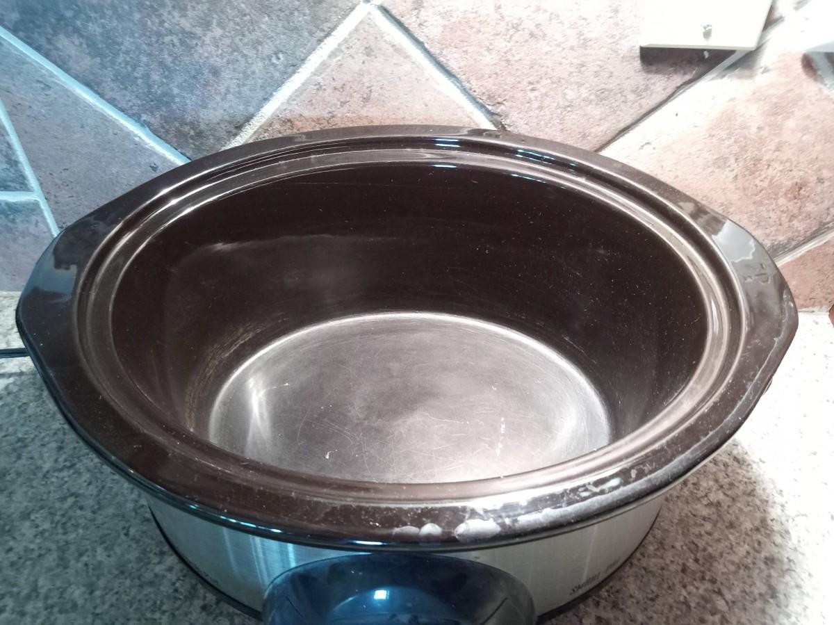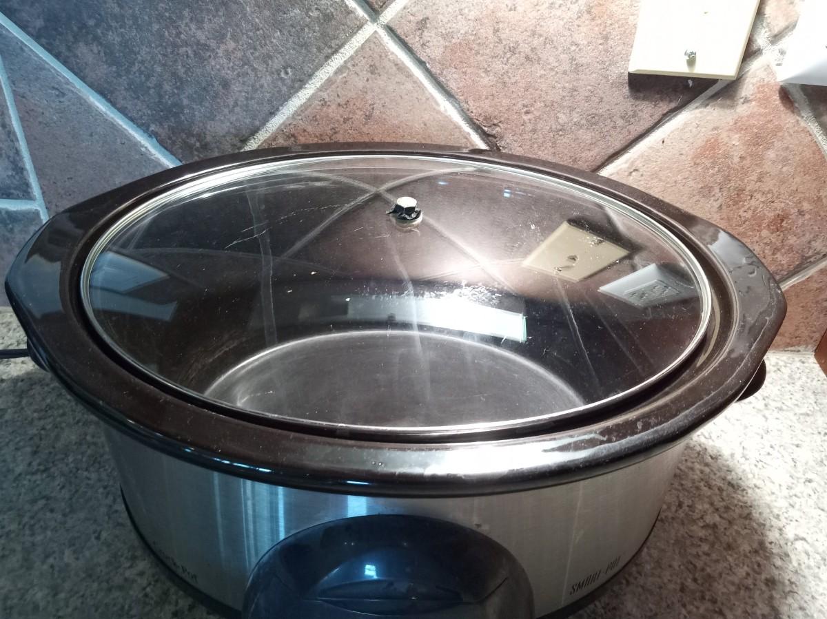 THE LID TO THE CROCK POT IS MISSING BUT EASILY REPLACED WITH ANY LID HANDLE YOU MAY HAVE LAYING AROUND
