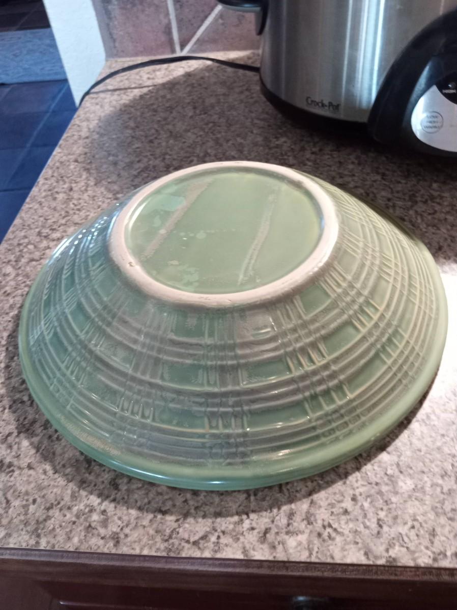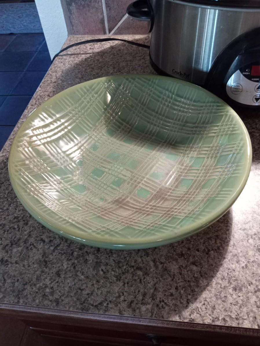 LOT 86 LARGE CROCK POT, CLAY SERVING BOWL AND DIVIDED GLASS PLATTER (HU)