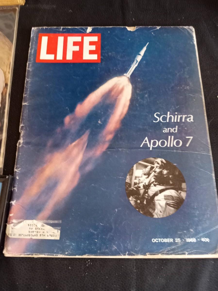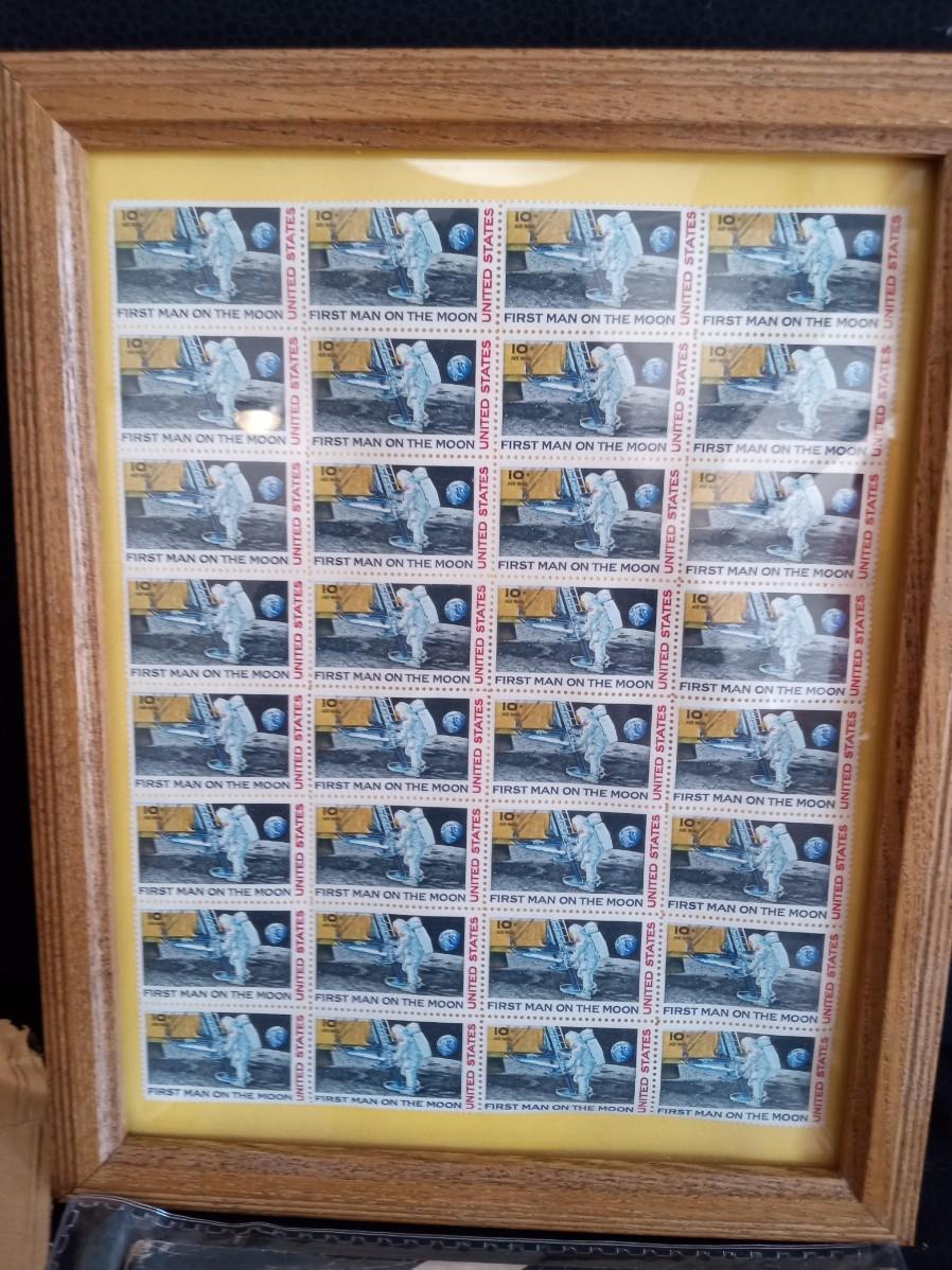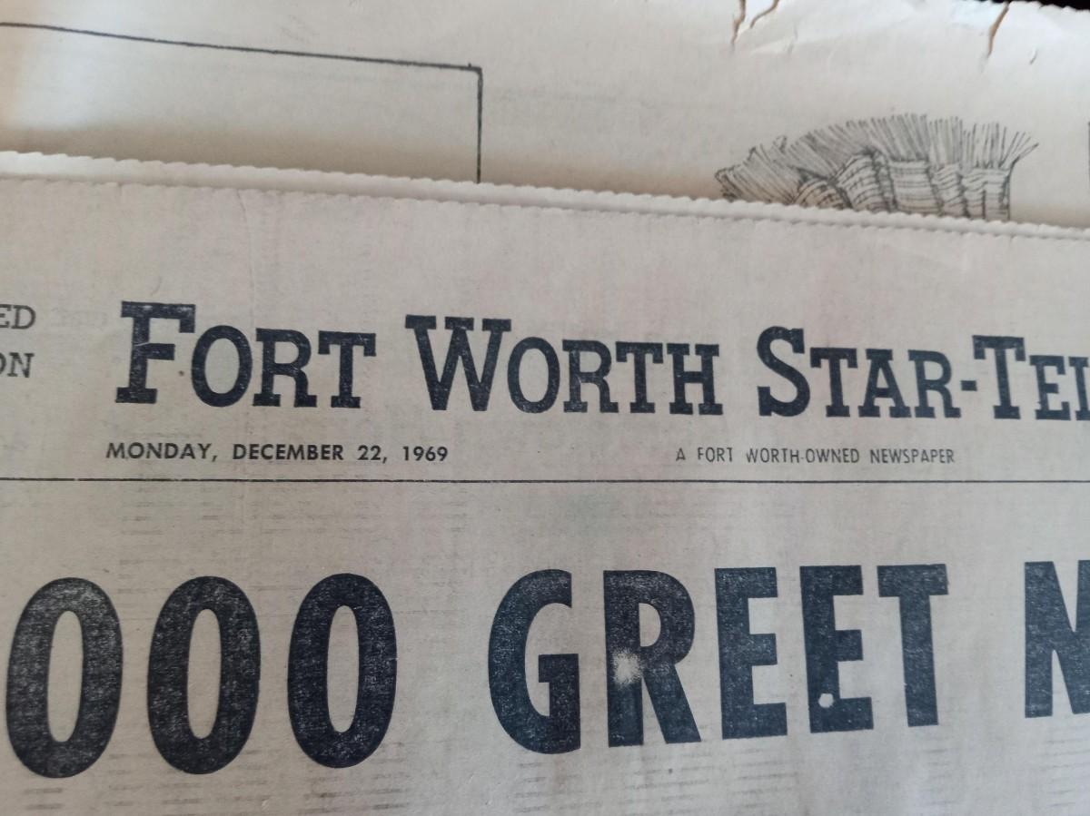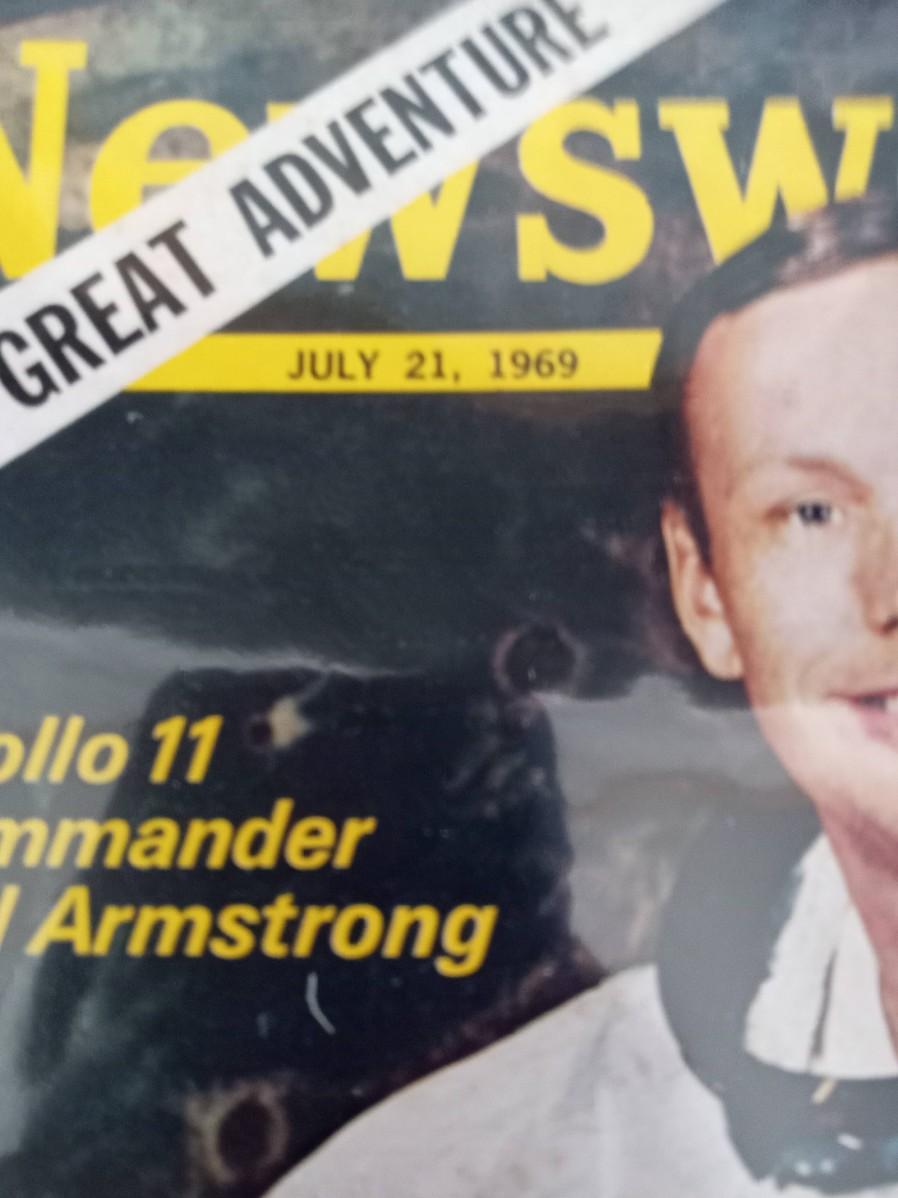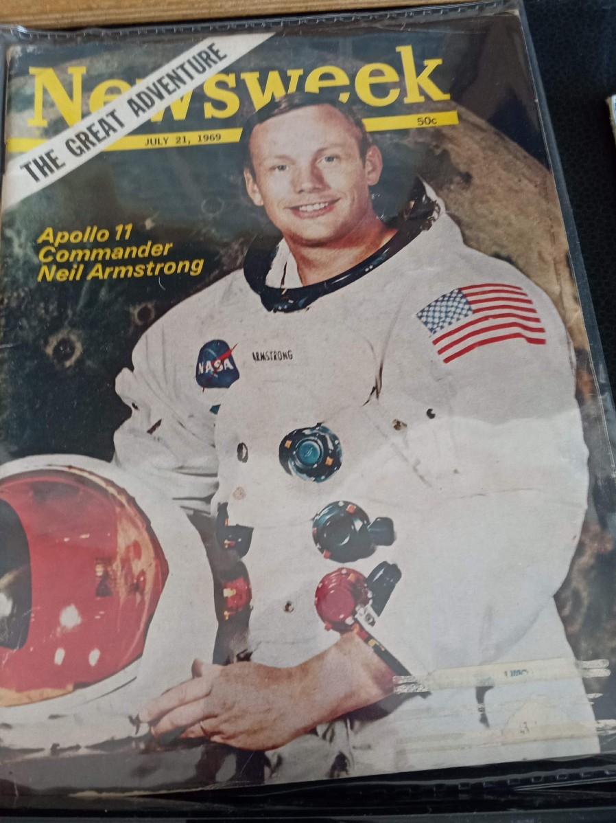 1968 LIFE MAGAZINE, 1969 NEWSWEEK, FULL SHEET OF POSTAGE STAMPS "FIRST MAN ON THE MOON", 2 FORT WORTH NEWSPAPERS FROM 1969