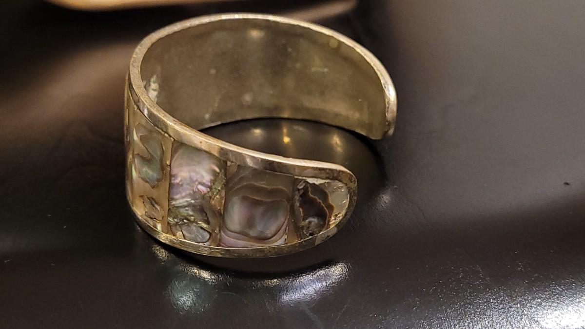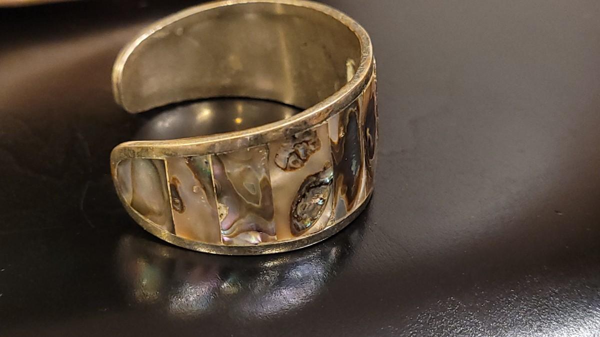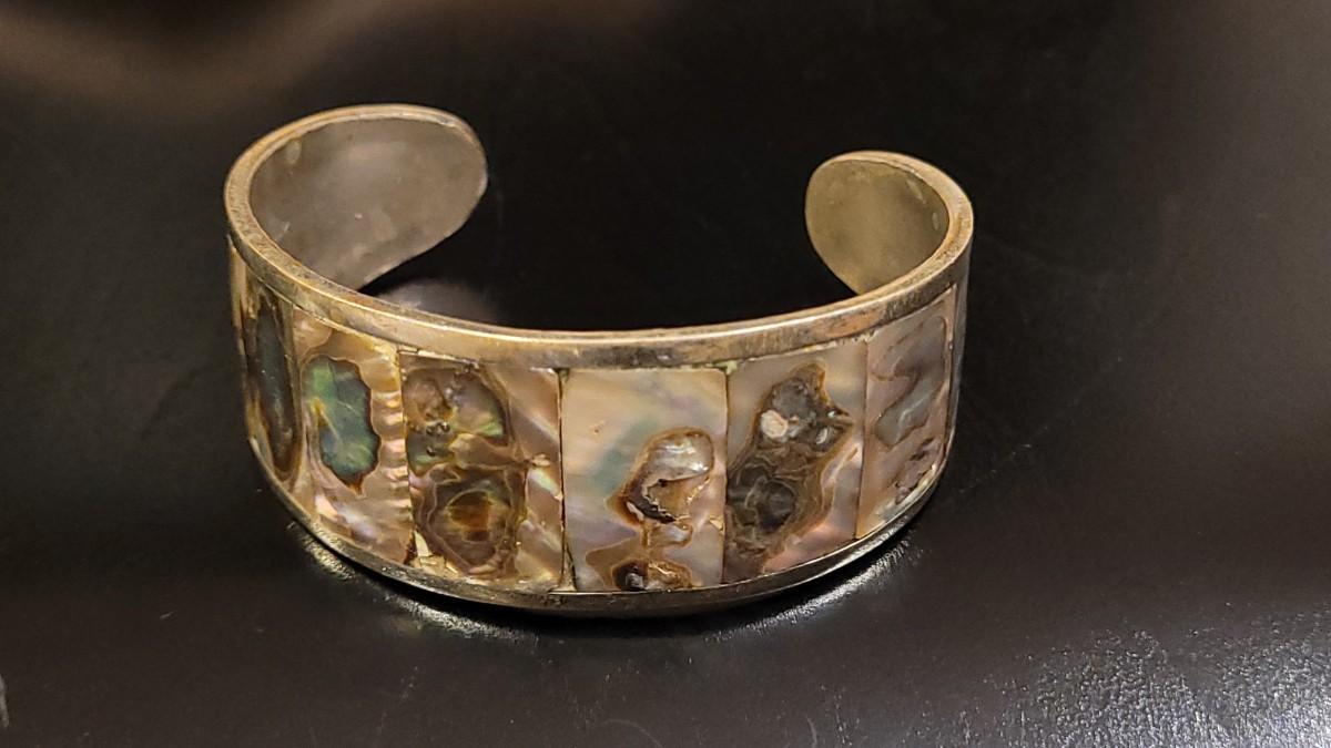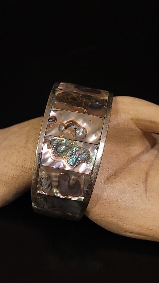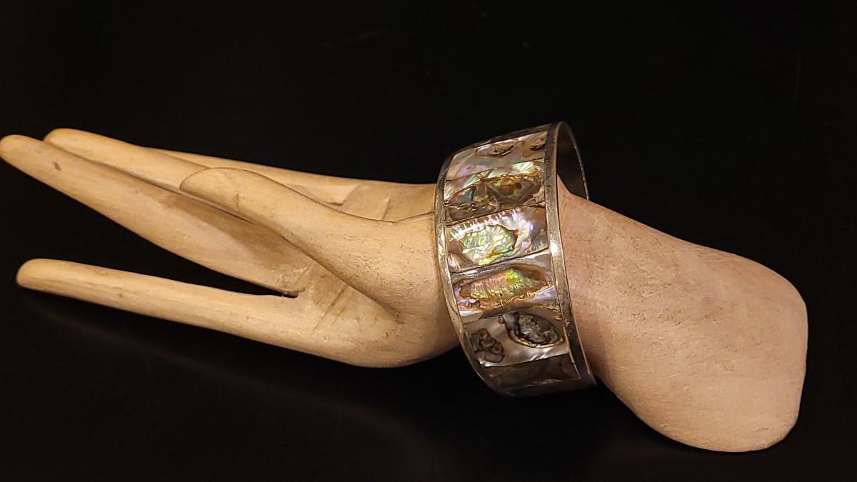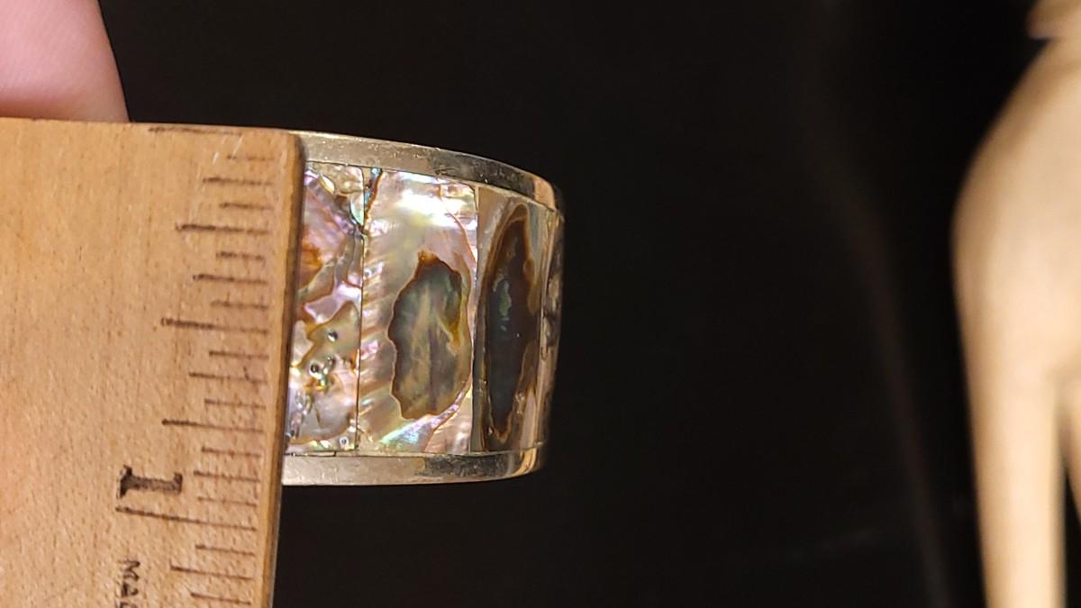Lot 86: Vintage Wide Sterling & Abalone Shell Cuff Bracelet