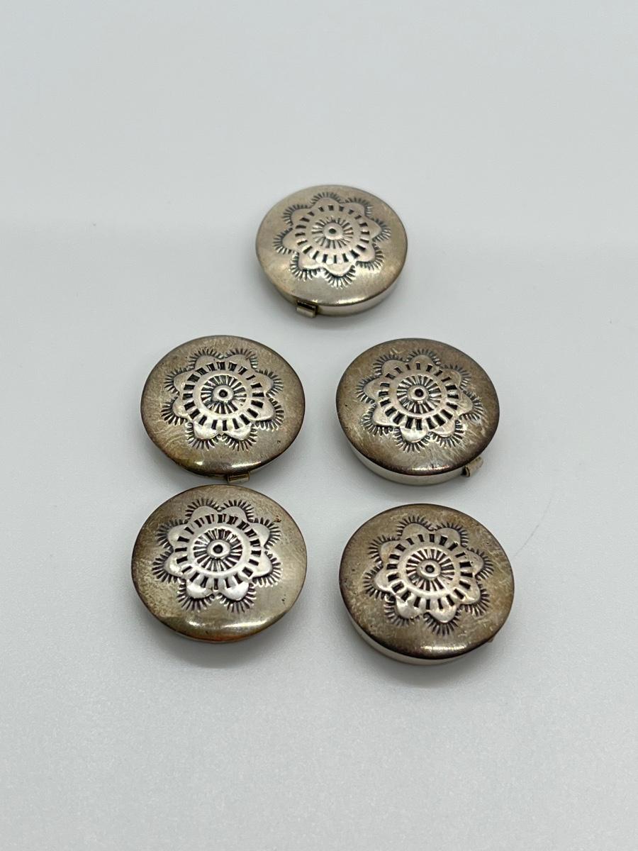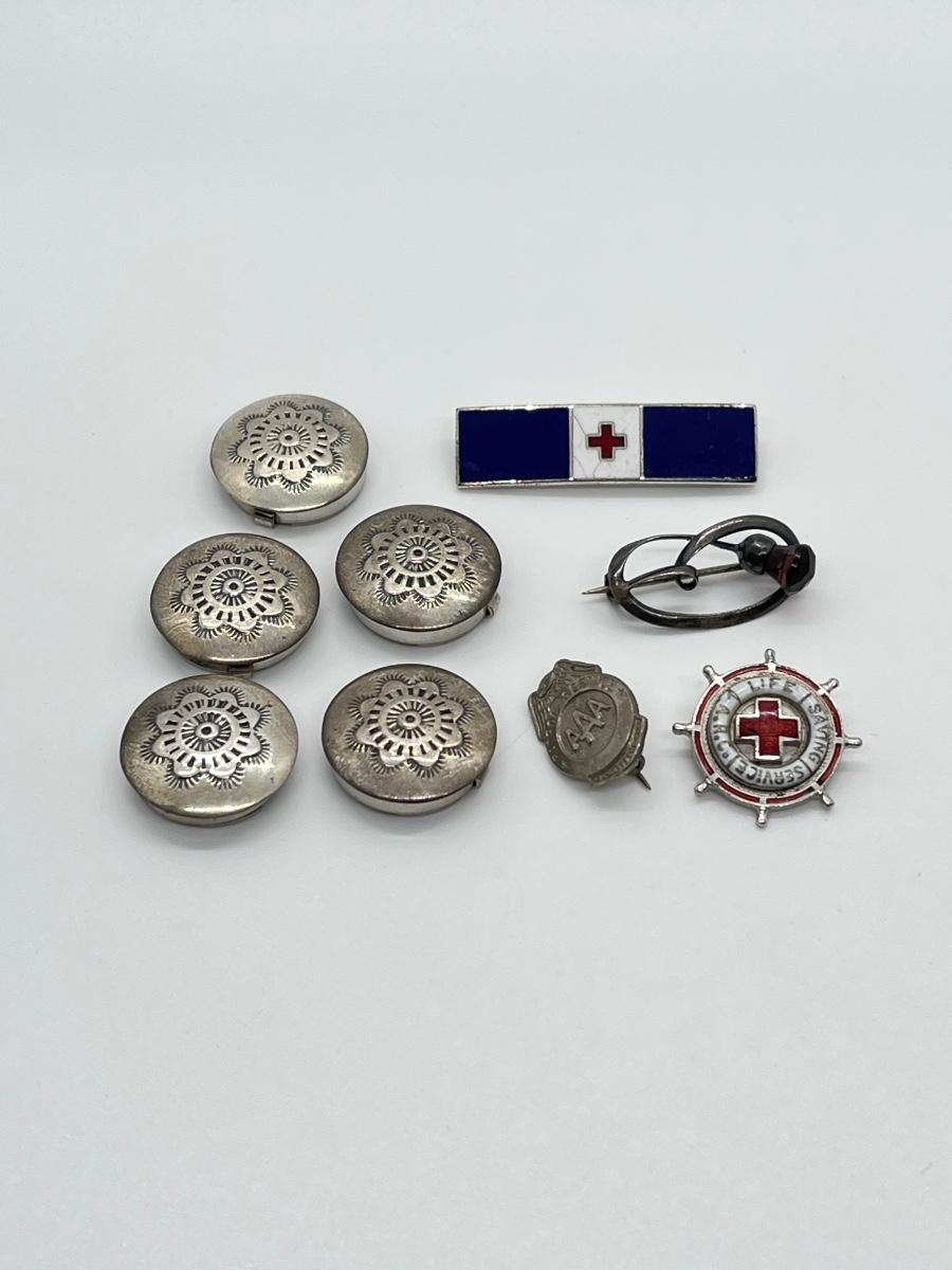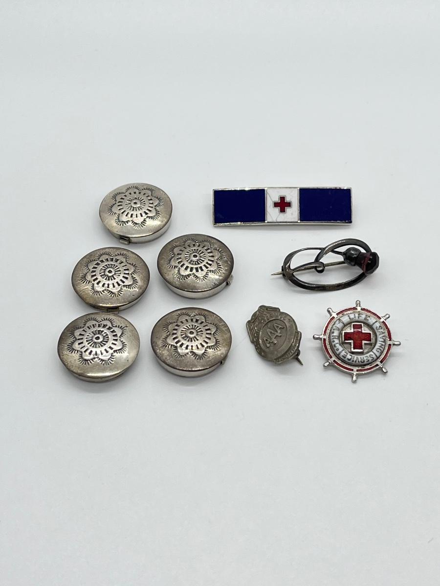 LOT 86: Etched Silver Button Covers and Miscellaneous Pins