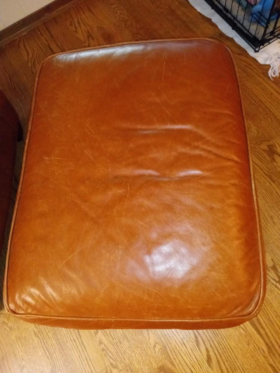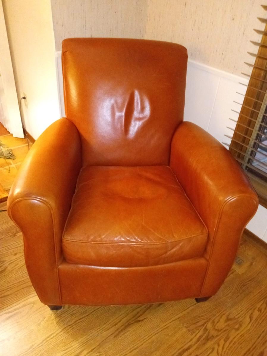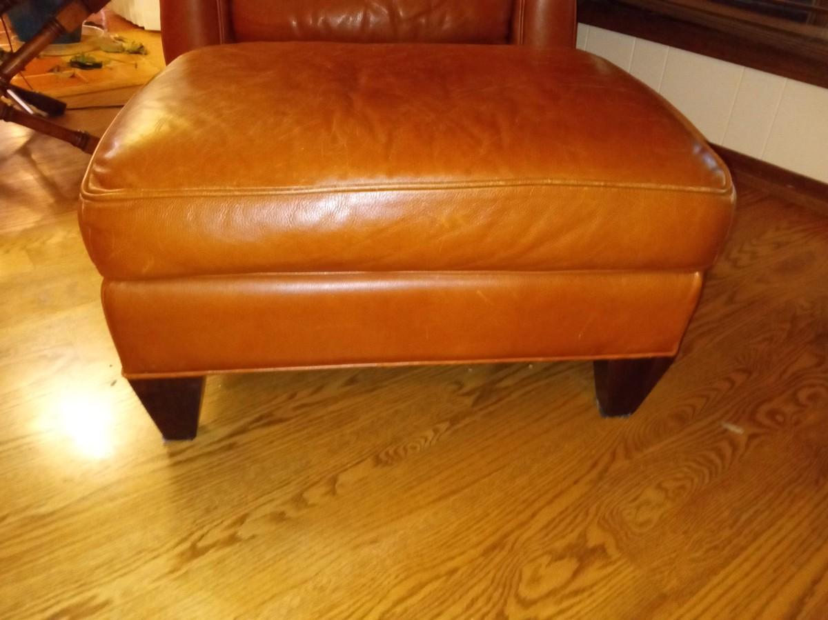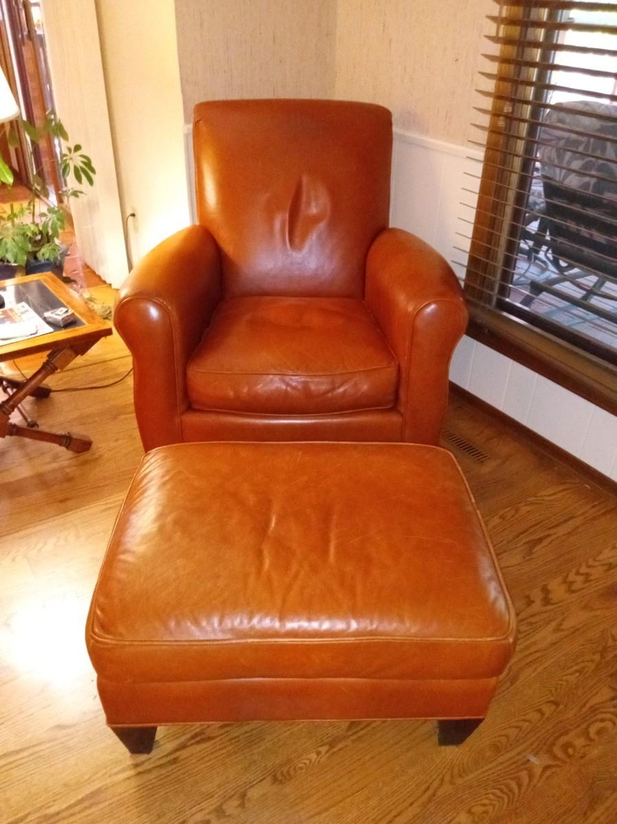 LOT 86 ARMED LEATHER LOUNGE CHAIR WITH OTTOMAN