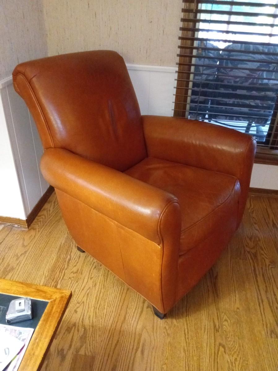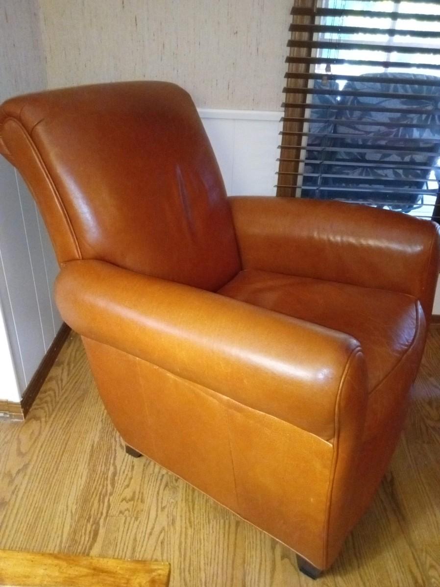 LOT 86  ARMED LEATHER LOUNGE CHAIR WITH OTTOMAN