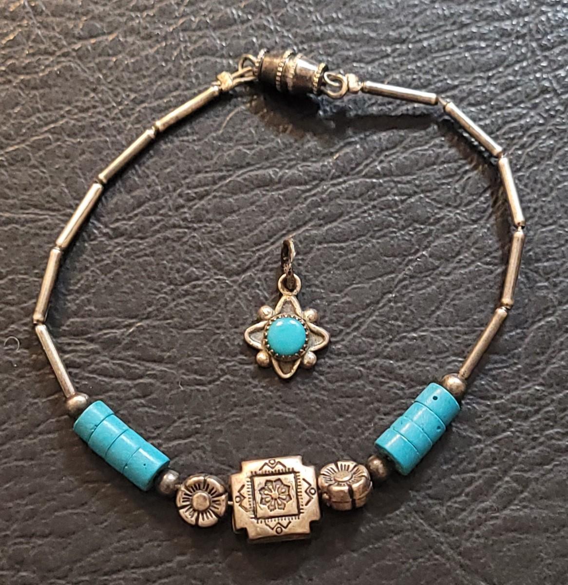 Lot 86: Navajo Sterling & Turquoise Pendant and Bracelet