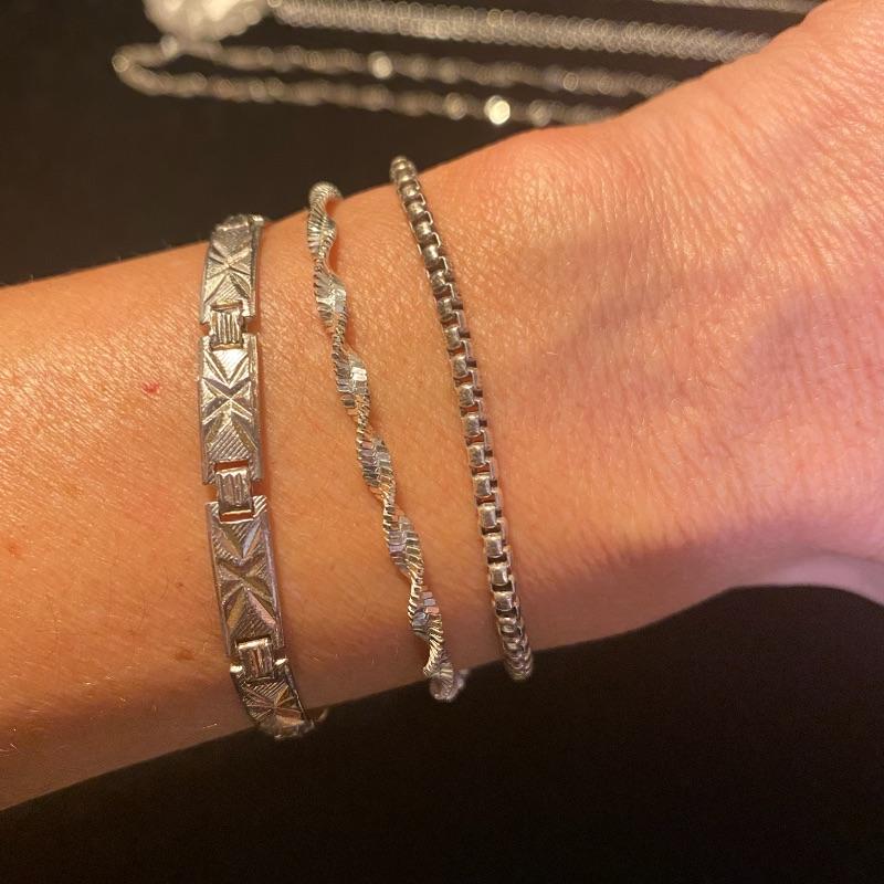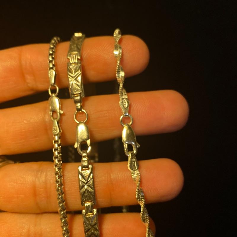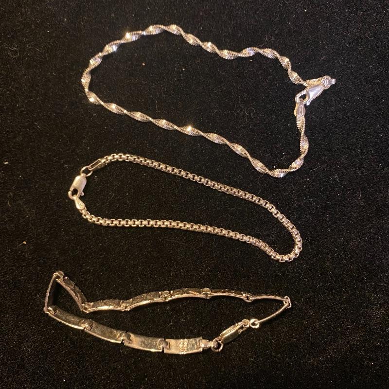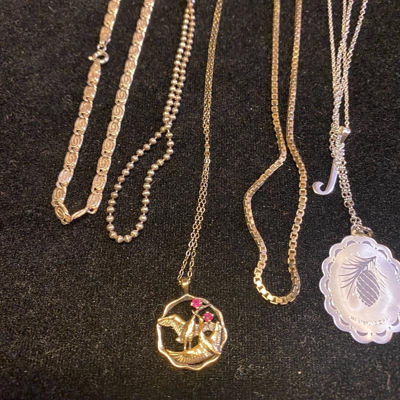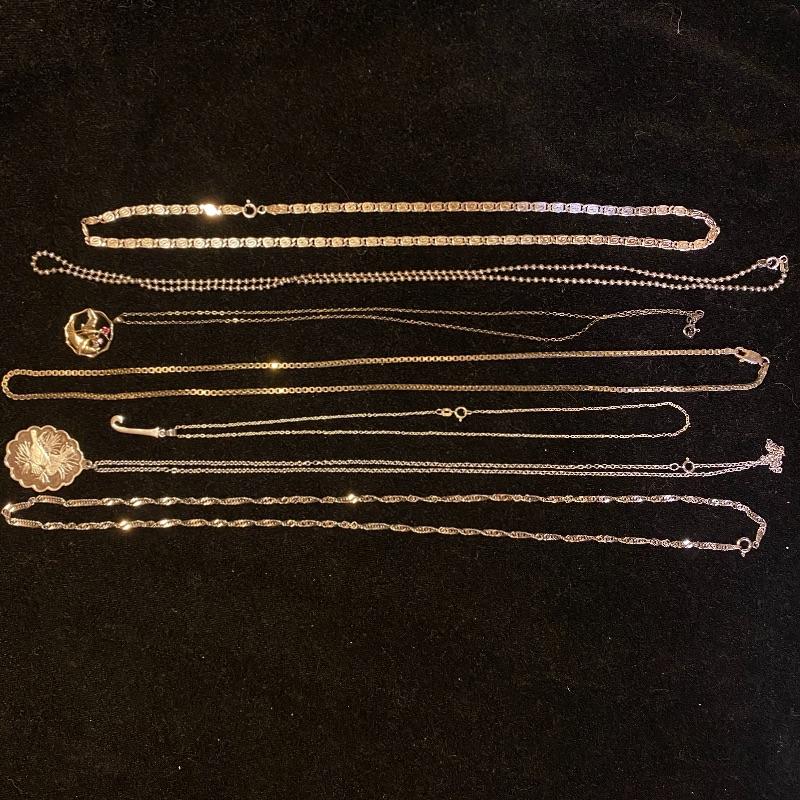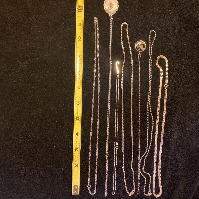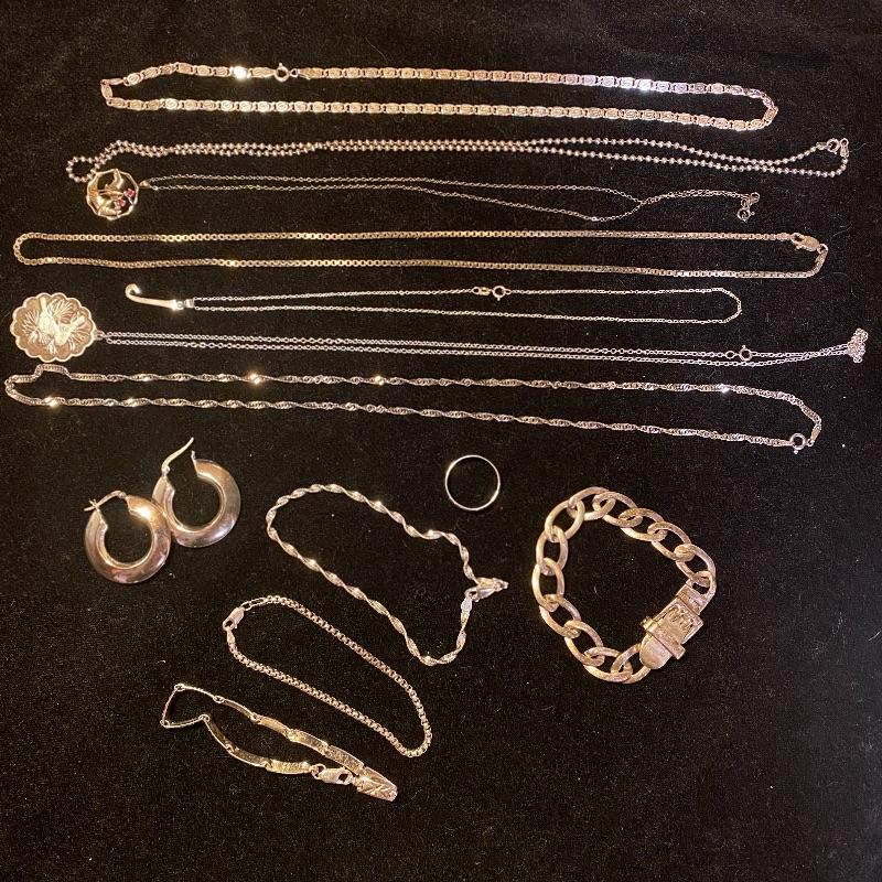 This lot includes seven necklaces with three of the necklaces having pendants on them, four bracelets, earrings and a silver ring. The chain link bracelet says RL (likely Ralph Lauren) and no 925 mark. All other pieces say Sterling or 925. Shipping available.