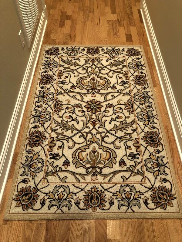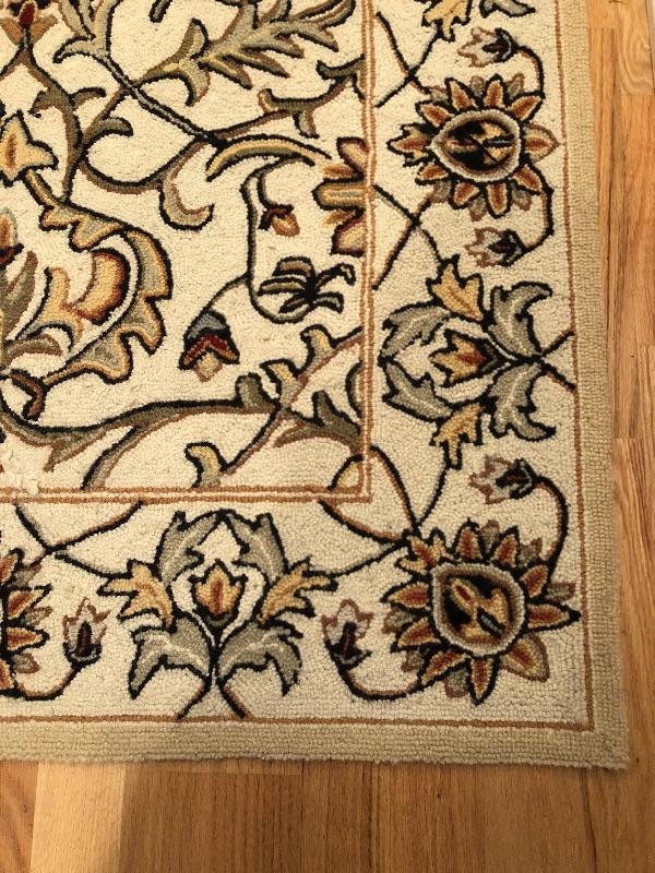 Nice Ivory Rug. Great size for a hall or entrance. Originally purchased at TJ Maxx. Size 3.6' x 5.6'
