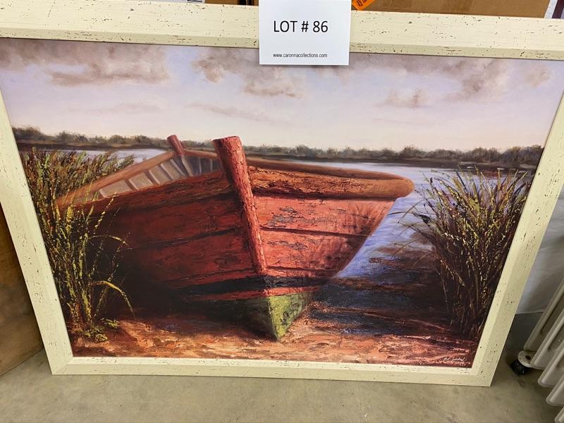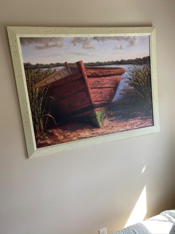 Very nice boat adrift on beach wall art 44.5” x 35”