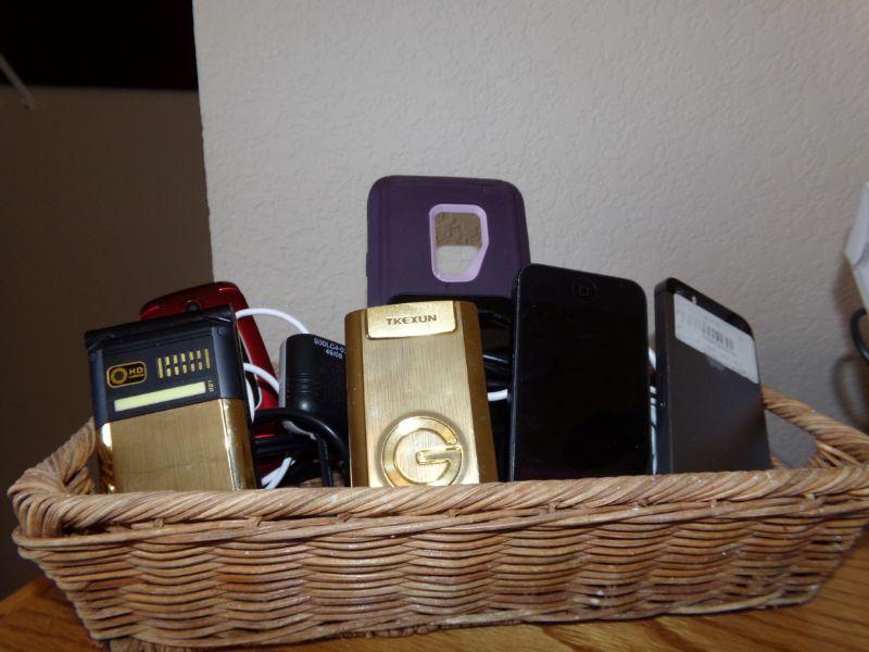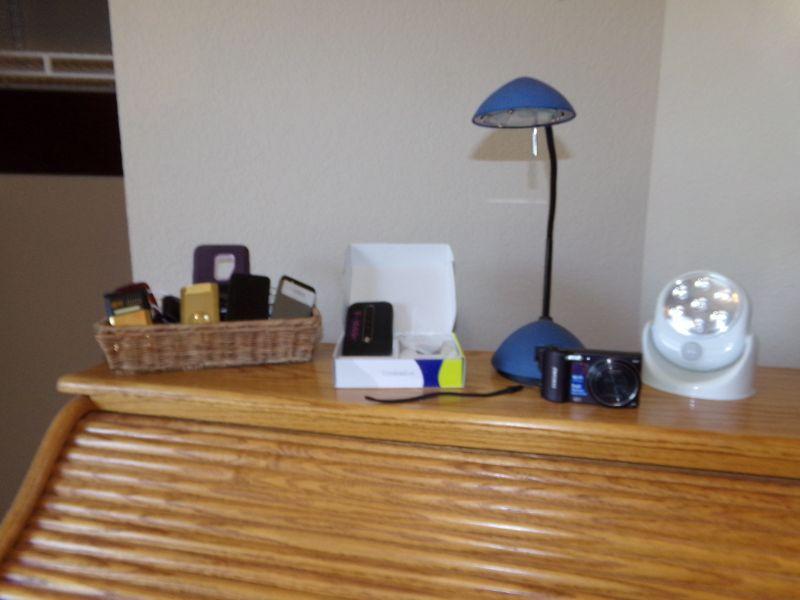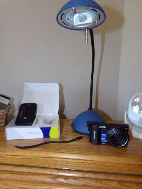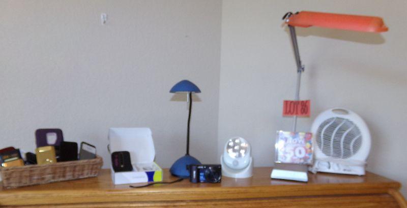 5 CELL PHONES, DESK LAMPS, SAMSUNG CAMERA AND MORE