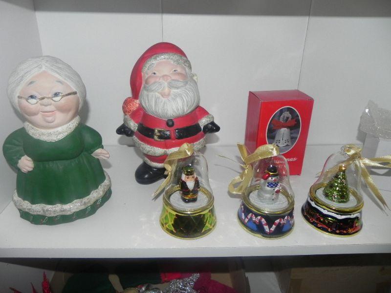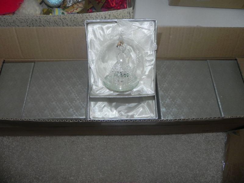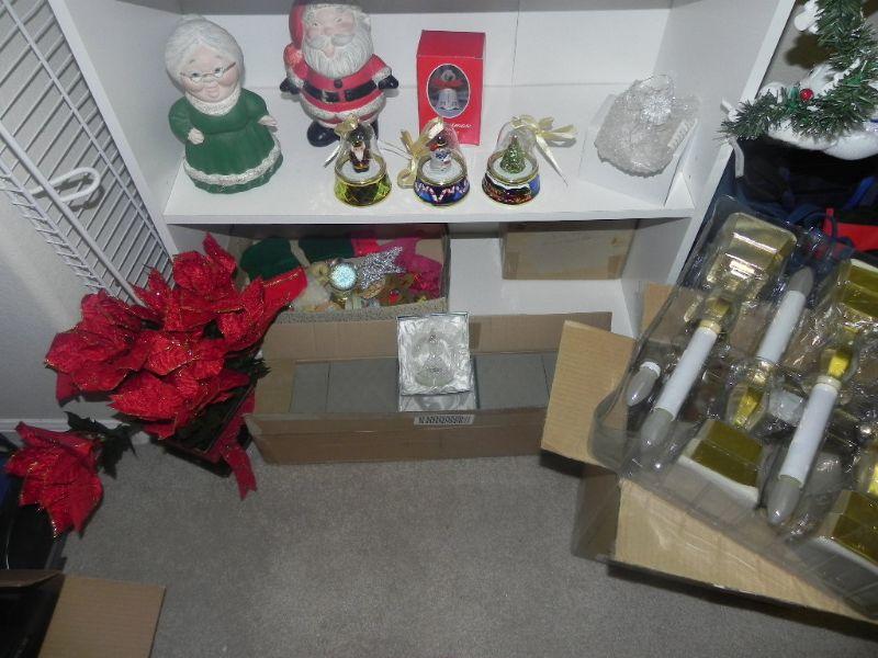 ELECTRIC CANDLES (NIB), GLASS & FROSTED TREE ORNAMENTS (NIB), FAUX POINSETTIA , PLASTIC BOWLS WITH LIDS AND GIFT BAGS (NIB), HOLIDAY TRINKET BOXS
