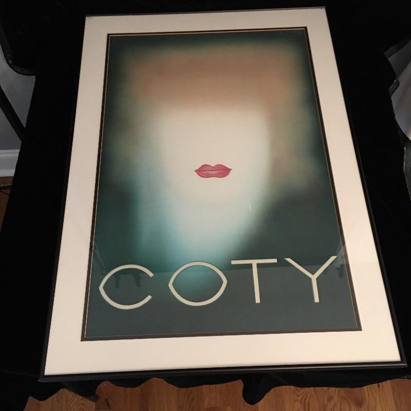 Biography of Coty, book about Coty perfumes and a framed and matted Coty ad. Read the biography and you will be transported back in time with all the tales of the man. Frame measures 24” x 35”.