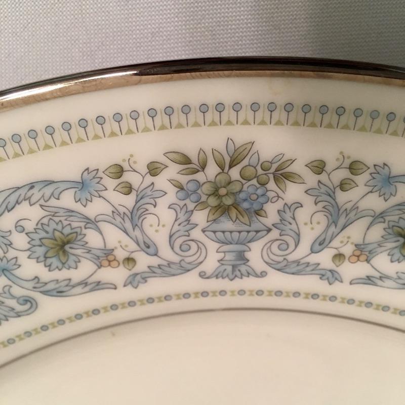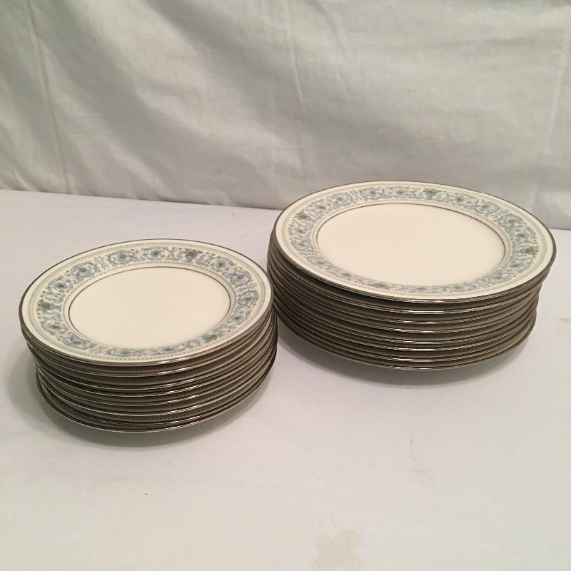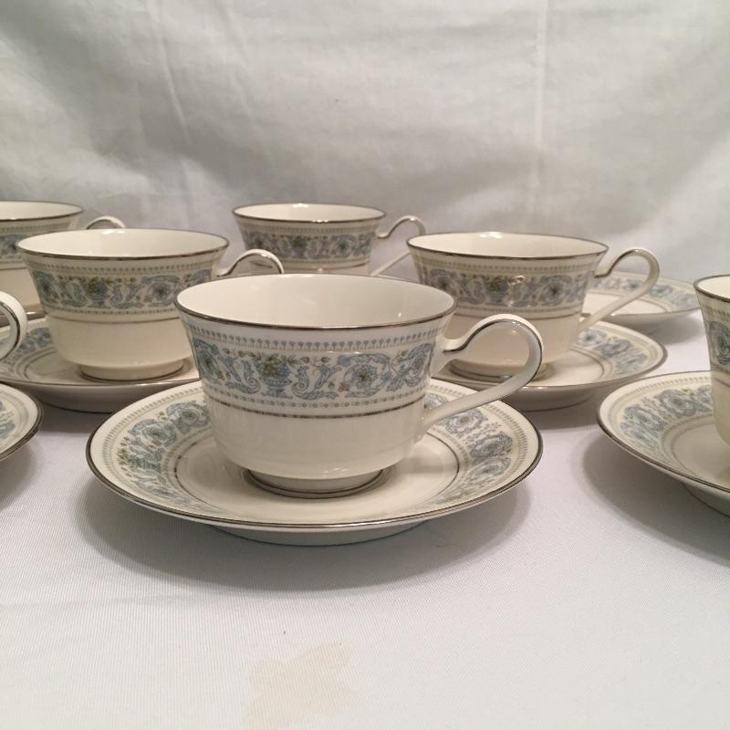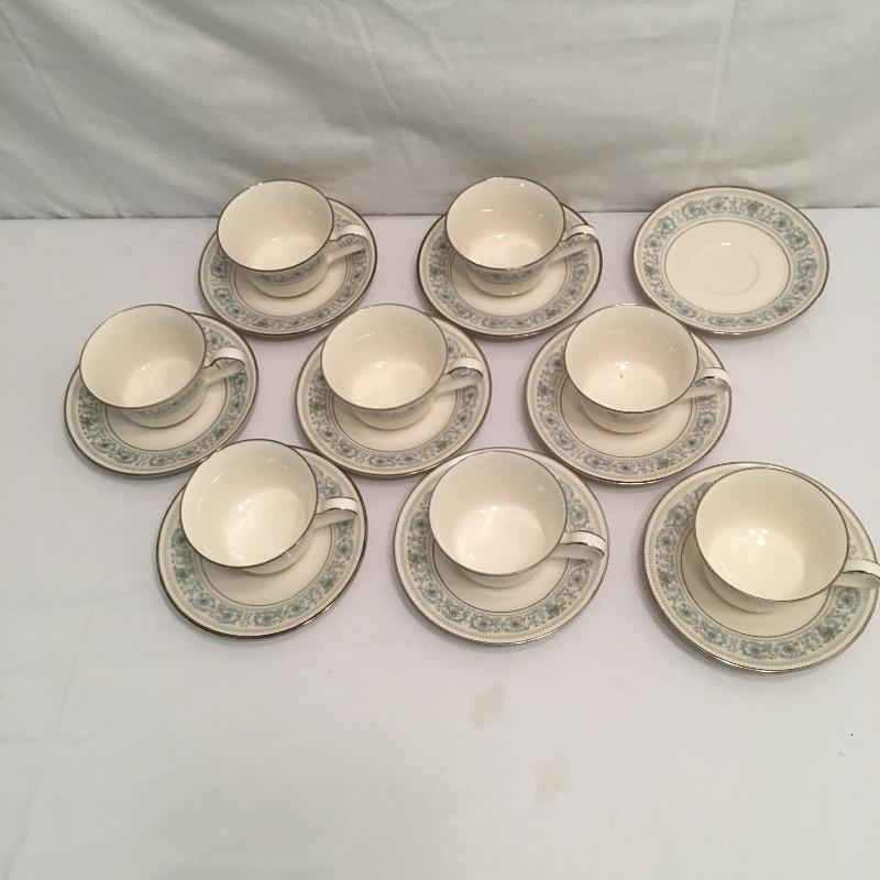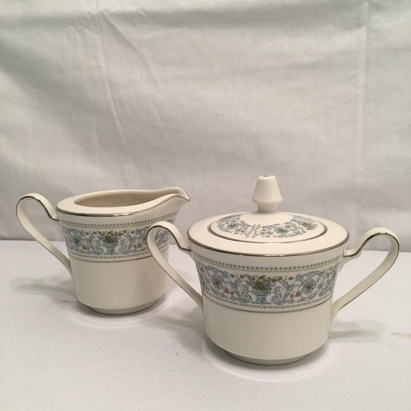 This is the prettiest of designs in this dinnerware set for eight. Eight each of dinner plates, side plates, cups and saucers with an extra saucer as well. In addition there is a creamer and sugar bowl. The set is Montelone and its a pretty blue floral design.