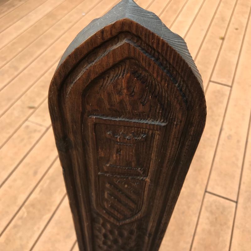 This antique Hall Prayer Chair is in a Jacobean style and is hand carved with a rustic but regal feel. It’s perfect for a corner or tight space. Approx. 14.5” x 14” x 42.5” h. Local pickup only.