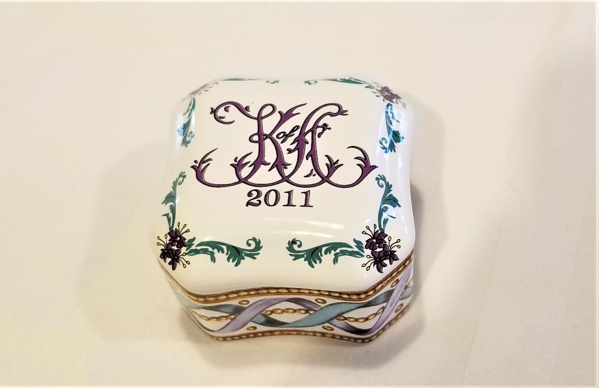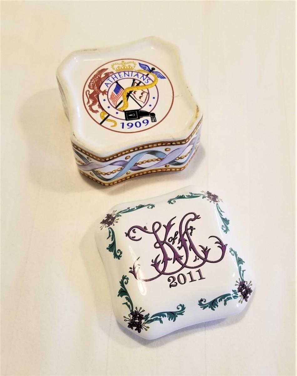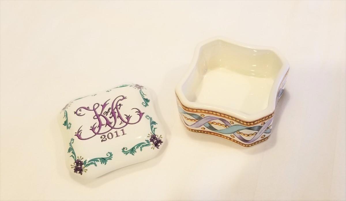 Sweet little ceramic trinket box - good condition - dated 2011, favor for the Krewe of Athenians. Measures 1.5" tall, 2.25" across