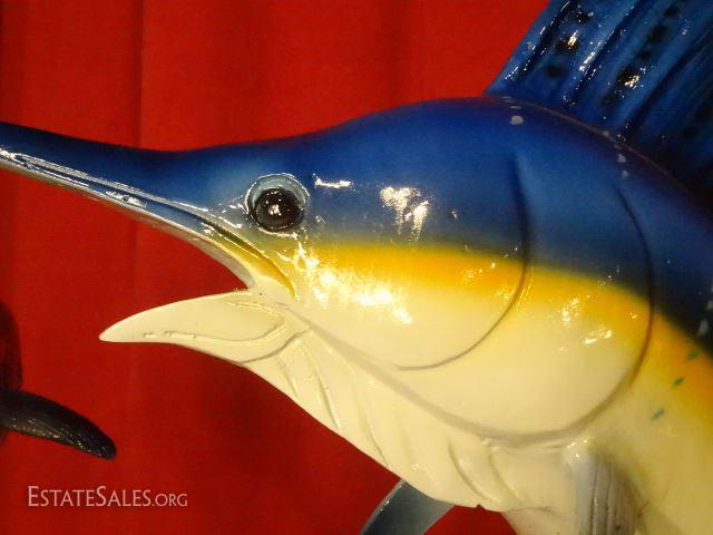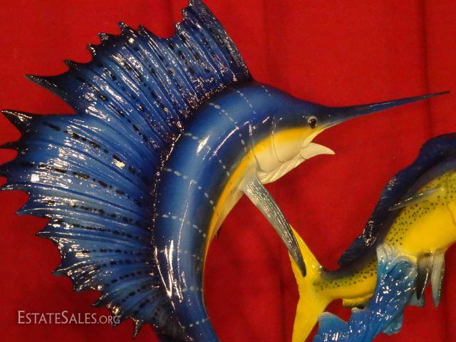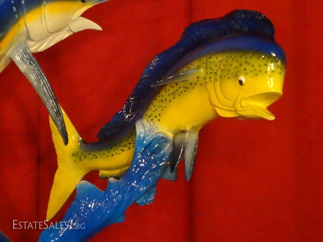 LOT 86: LARGE PATINATED BRONZE SCULPTURE, SAILFISH AND MAHI MAHI, INSCRIBED JAY WILLIAMS, EXCELLENT CONDITION, 30" X 20", SKU146.16 H90