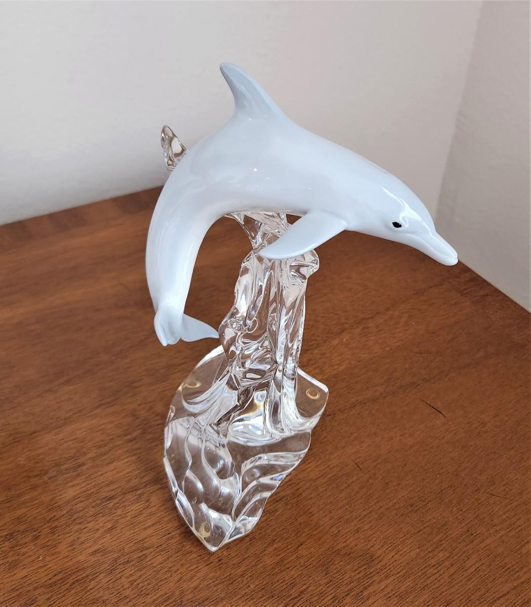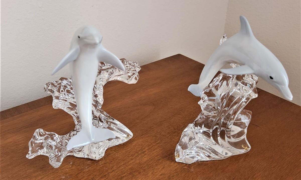 Lot of 2 LENOX Dolphin sculptures - signed, dated 1995. Each about 7" tall. Good condition, no box.