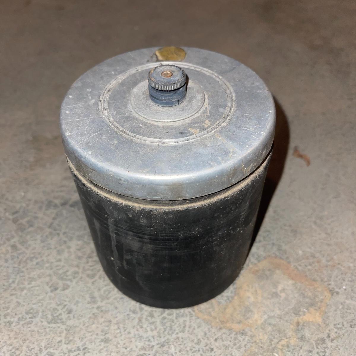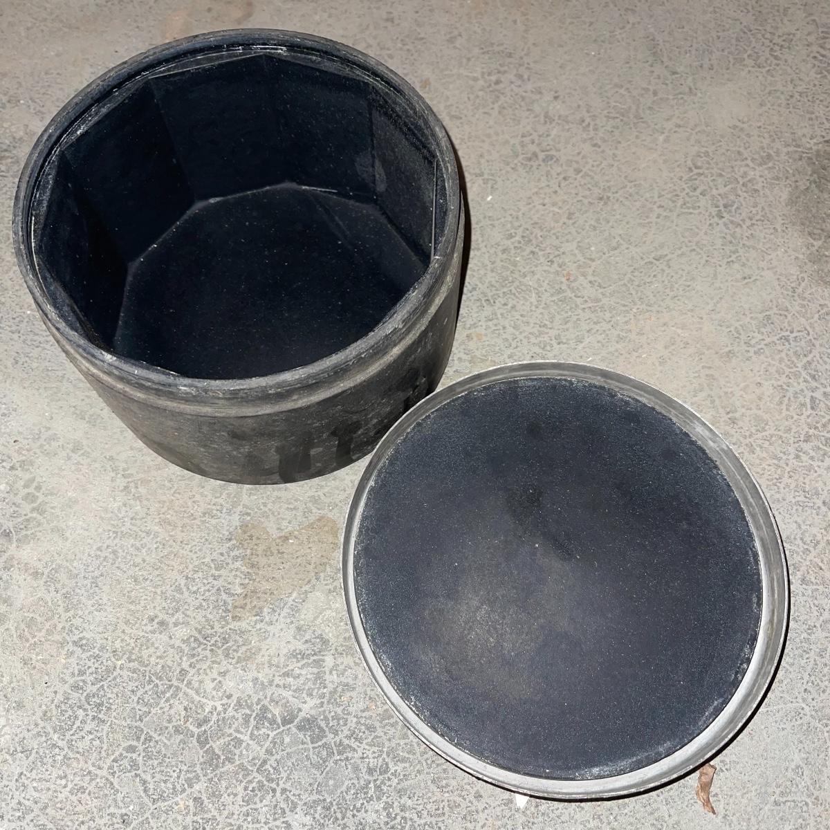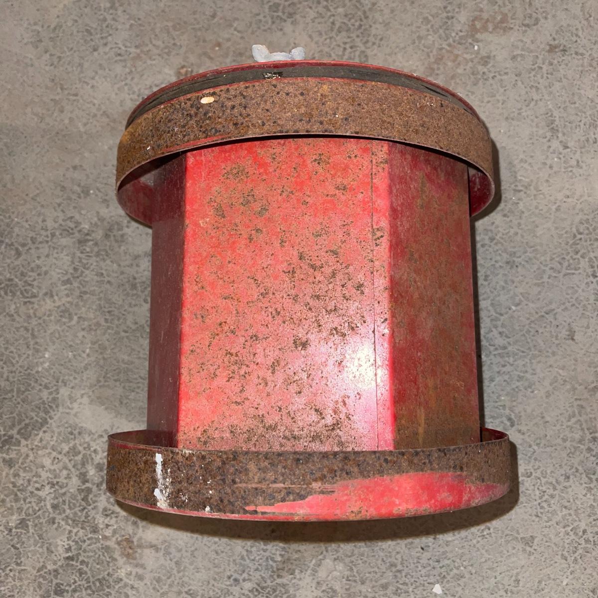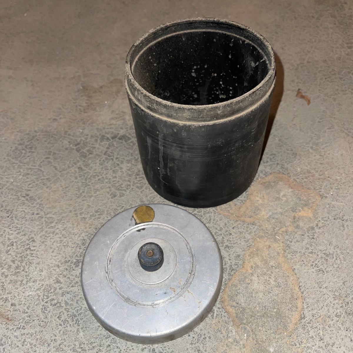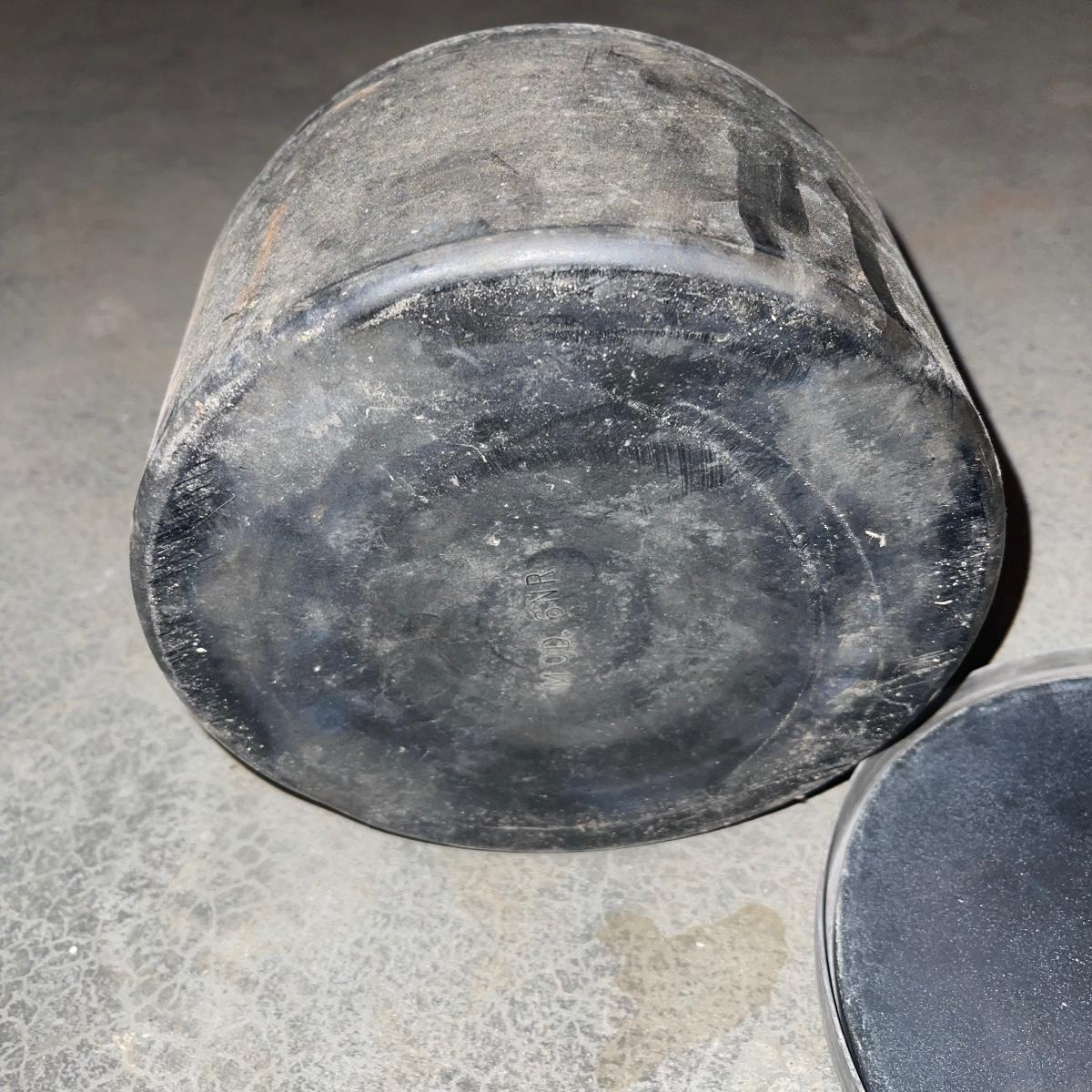 There are six rock tumbler drums in this lot, two large ones, three medium sized, and one small. The three medium sized drums measure 7.5“ in diameter and 4.5“ tall and all are in fair condition with wear from use. They have both rubber exteriors and interiors with metal lids. The large red and blue drums are about 9“ in diameter and 9“ tall, are metal with interior rubber liners, and have a 12lb capacity. The blue drum with a blue model TU-12 Star Diamond Industries tumbler, both are well rusted. There are a few types of polishing tools included as well as four bags and a container with a variety of tumbling grit. Add to your rock tumbling collection with these spare drums and extra grit!