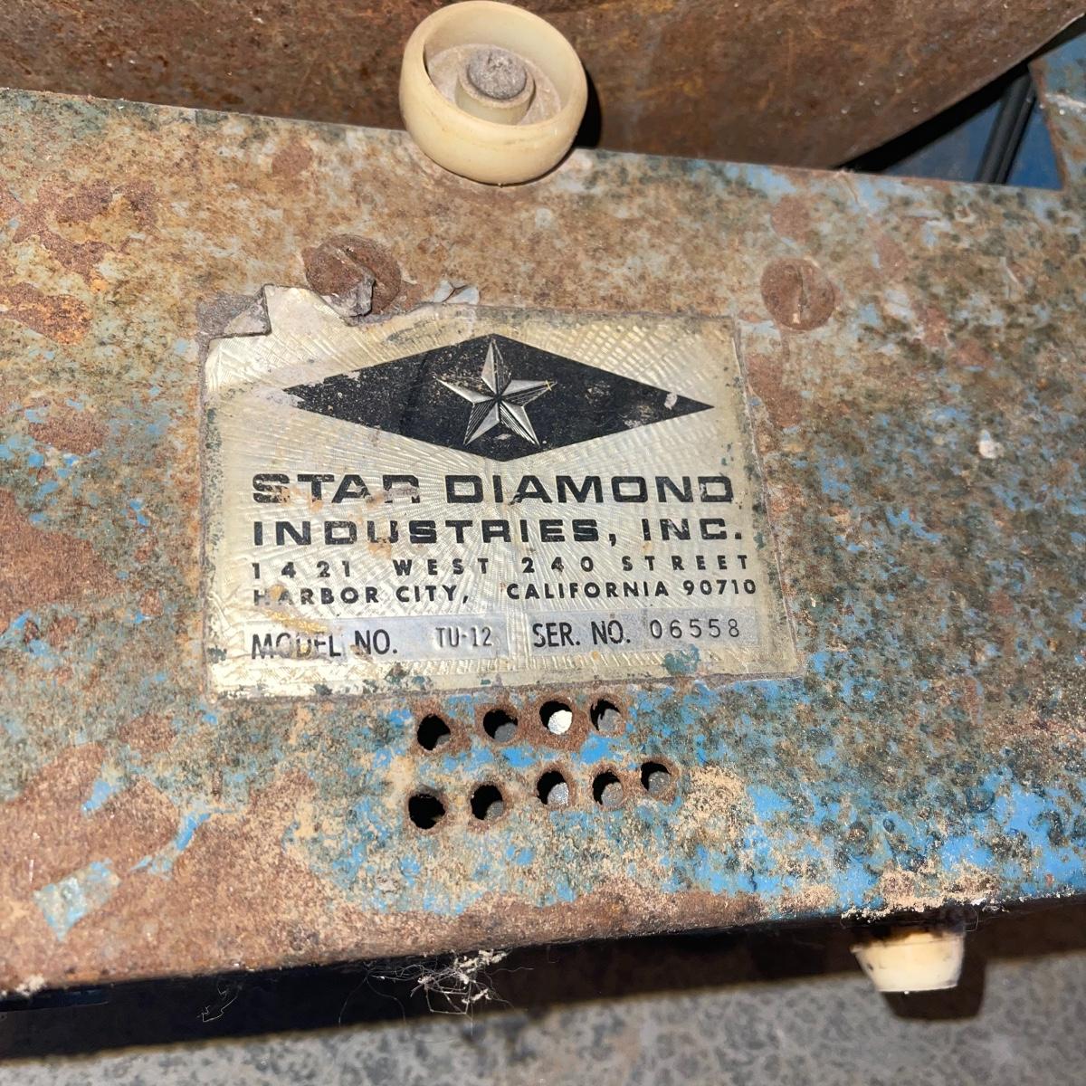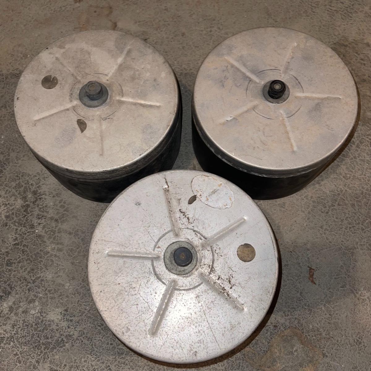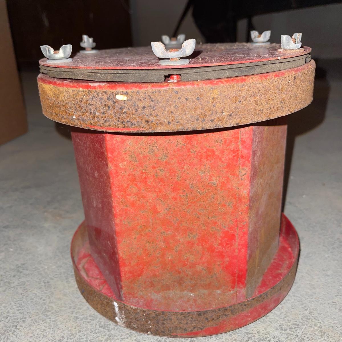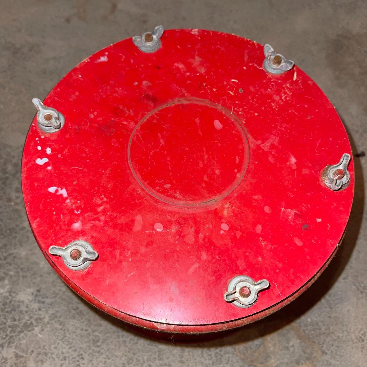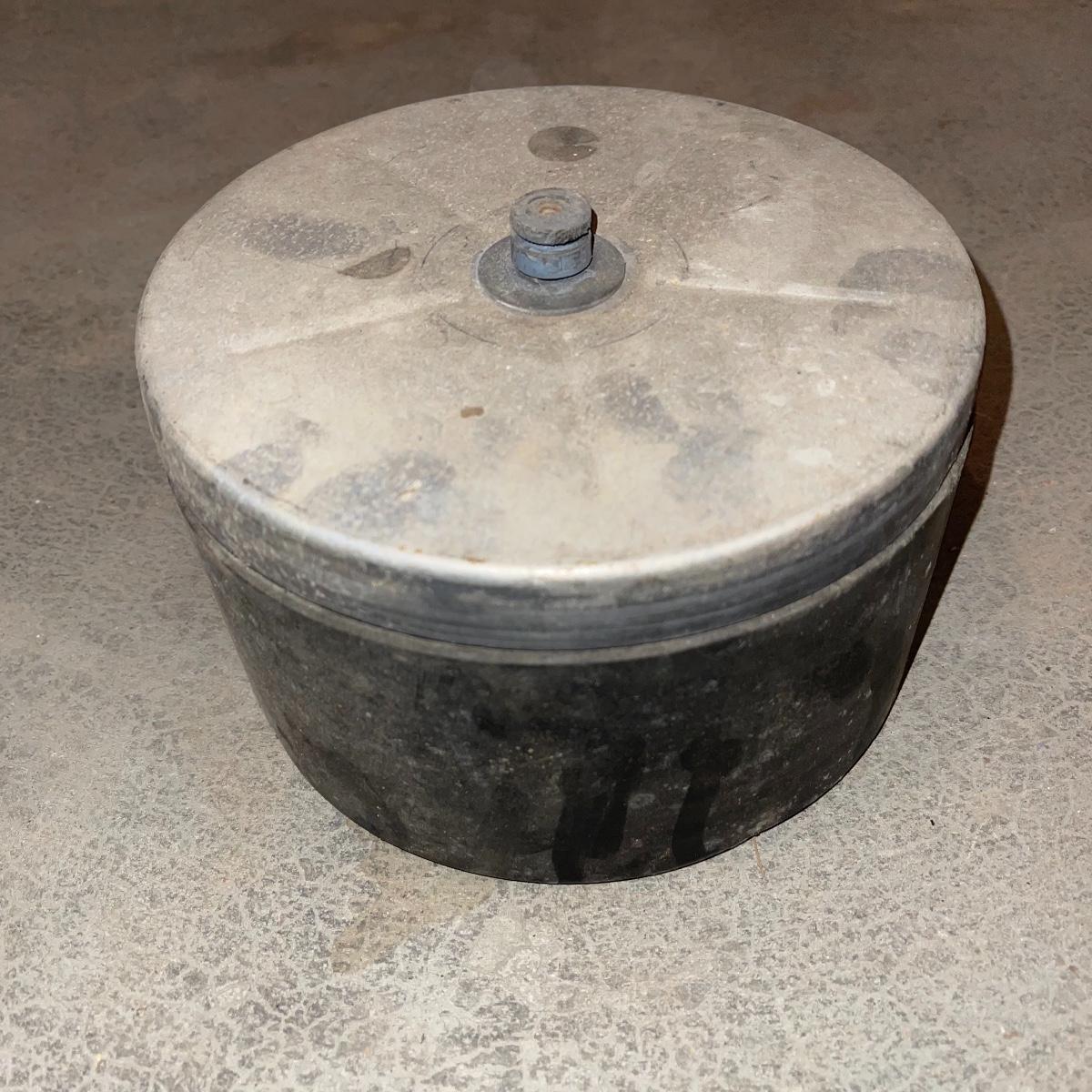 There are six rock tumbler drums in this lot, two large ones, three medium sized, and one small. The three medium sized drums measure 7.5“ in diameter and 4.5“ tall and all are in fair condition with wear from use. They have both rubber exteriors and interiors with metal lids. The large red and blue drums are about 9“ in diameter and 9“ tall, are metal with interior rubber liners, and have a 12lb capacity. The blue drum with a blue model TU-12 Star Diamond Industries tumbler, both are well rusted. There are a few types of polishing tools included as well as four bags and a container with a variety of tumbling grit. Add to your rock tumbling collection with these spare drums and extra grit!
