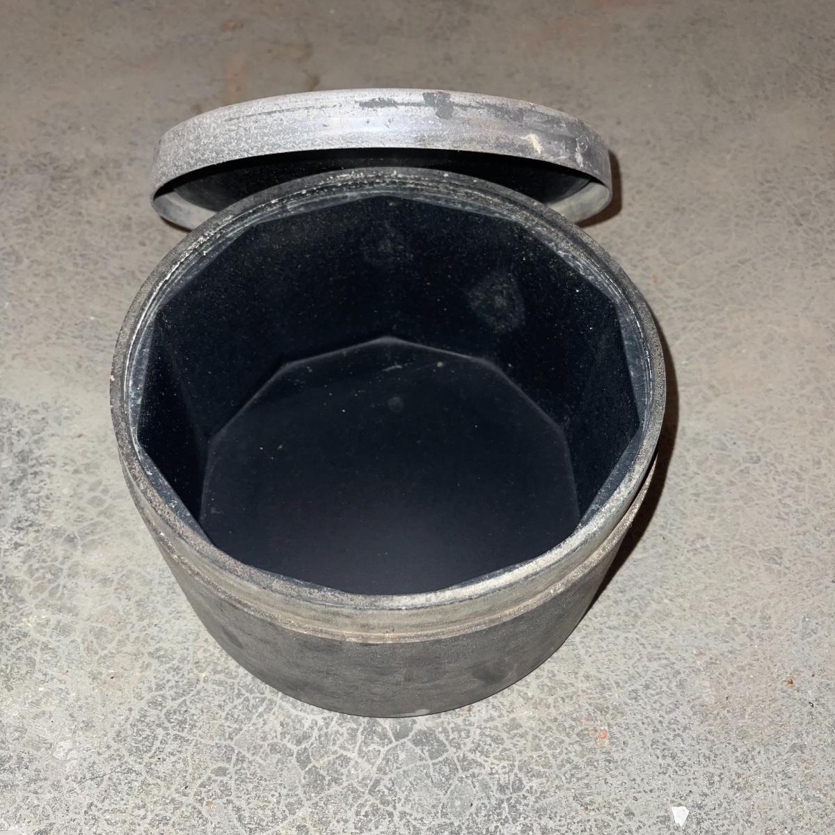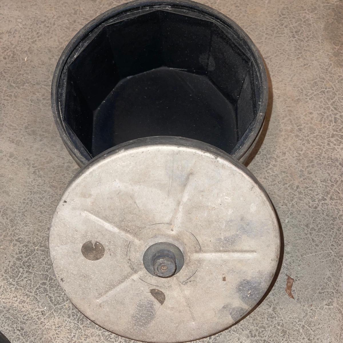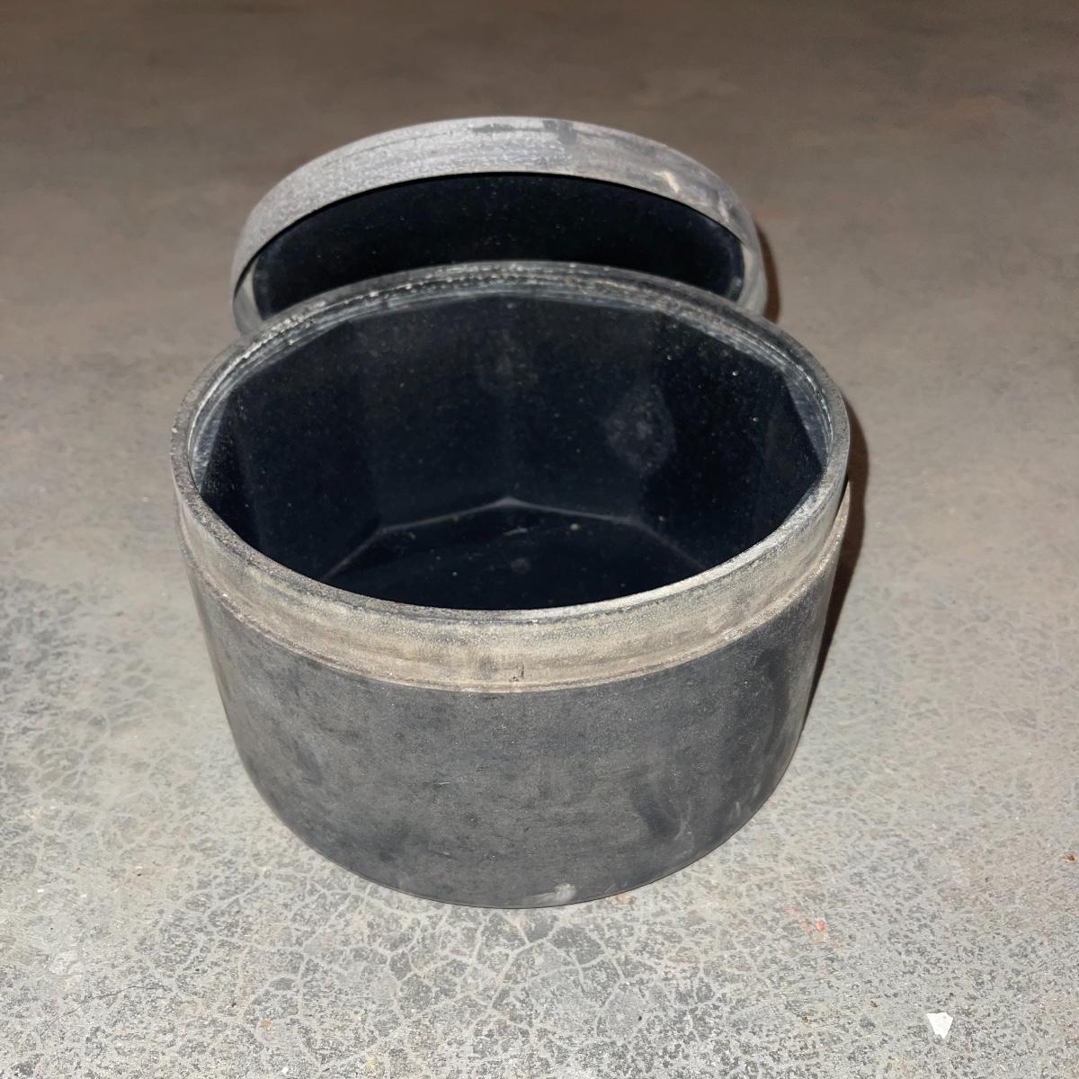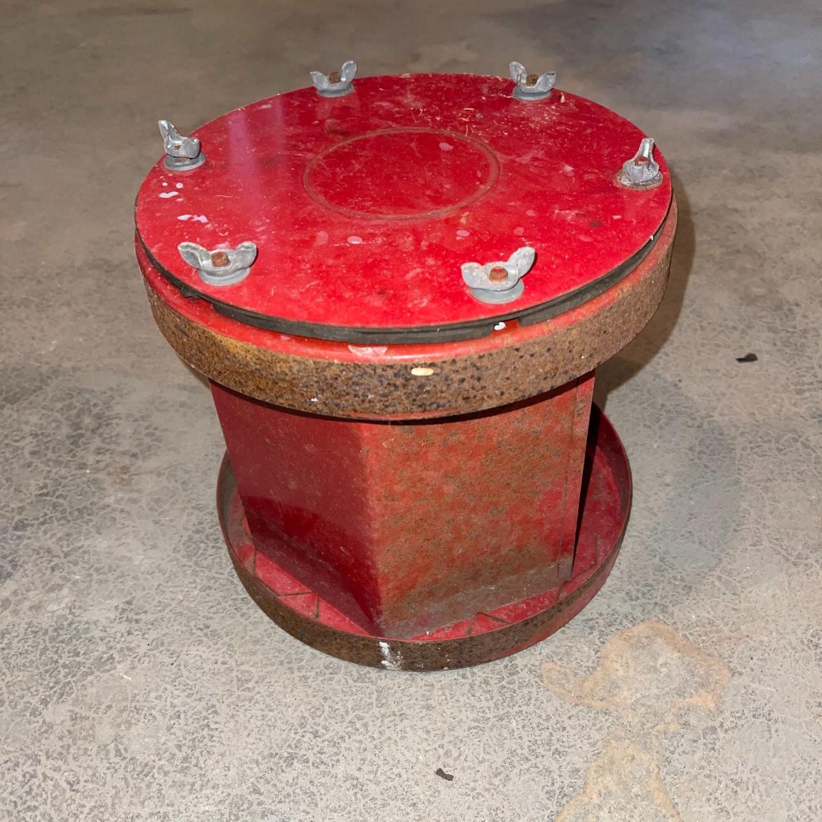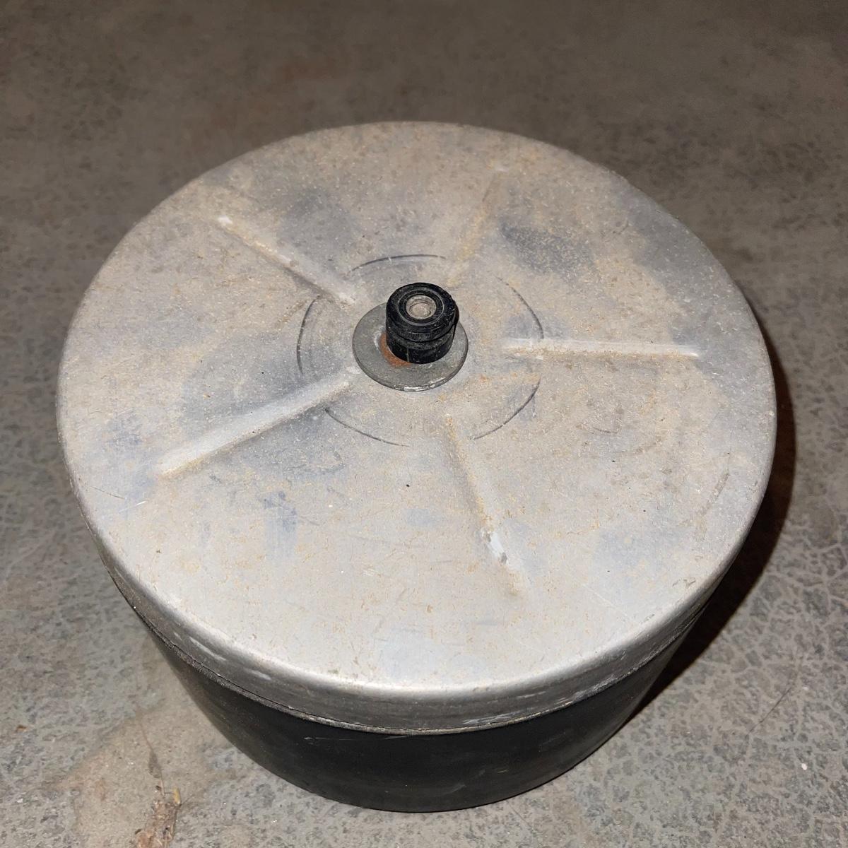 There are six rock tumbler drums in this lot, two large ones, three medium sized, and one small. The three medium sized drums measure 7.5“ in diameter and 4.5“ tall and all are in fair condition with wear from use. They have both rubber exteriors and interiors with metal lids. The large red and blue drums are about 9“ in diameter and 9“ tall, are metal with interior rubber liners, and have a 12lb capacity. The blue drum with a blue model TU-12 Star Diamond Industries tumbler, both are well rusted. There are a few types of polishing tools included as well as four bags and a container with a variety of tumbling grit. Add to your rock tumbling collection with these spare drums and extra grit!