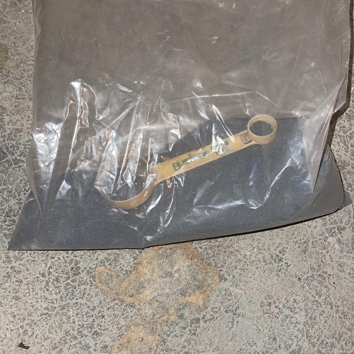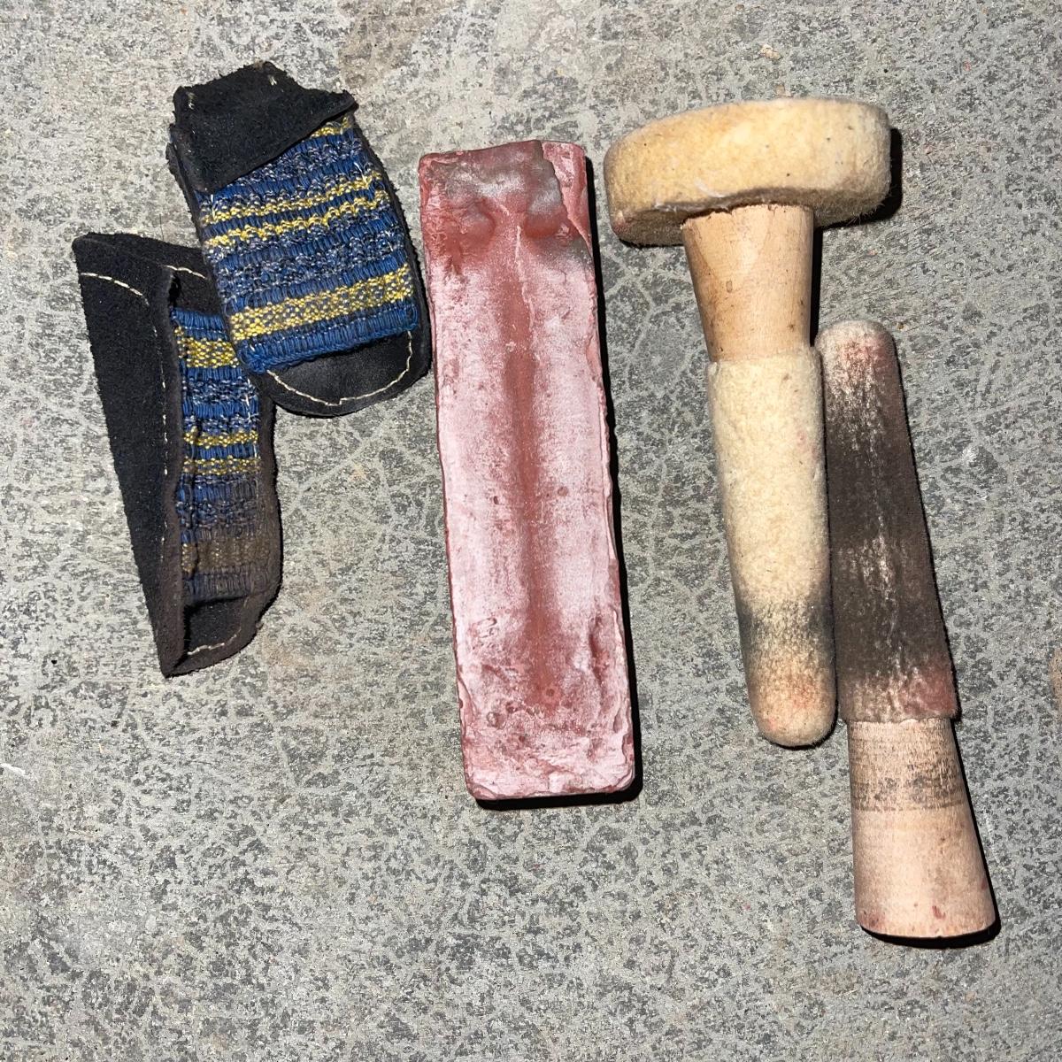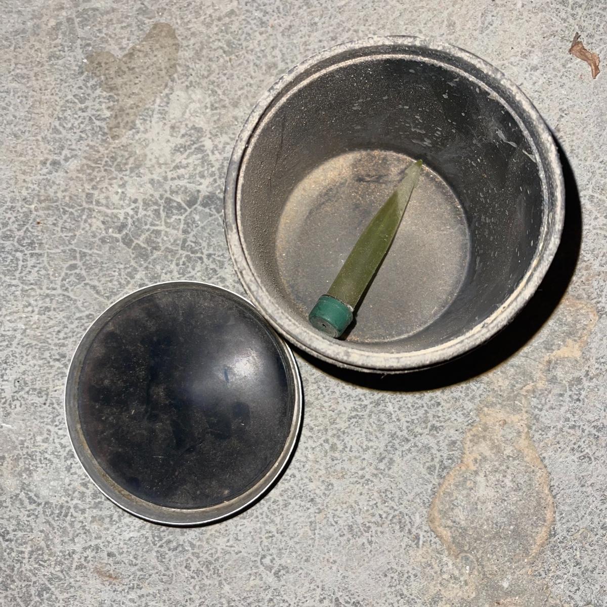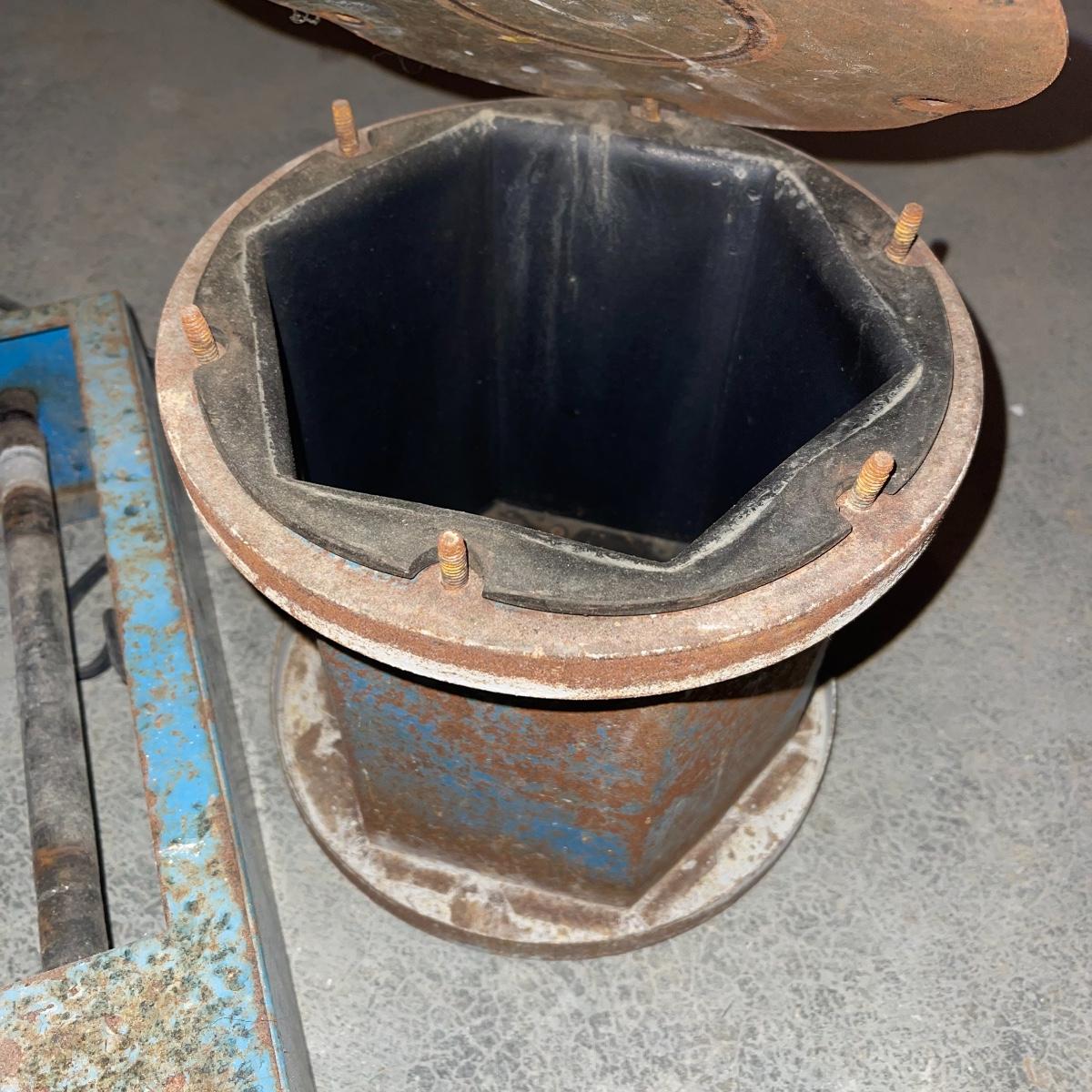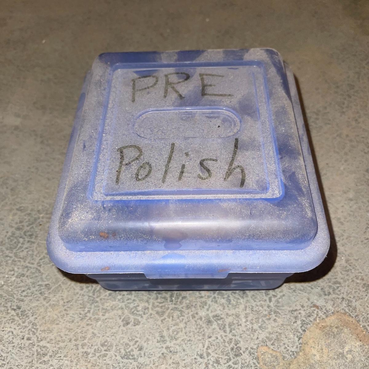 There are six rock tumbler drums in this lot, two large ones, three medium sized, and one small. The three medium sized drums measure 7.5“ in diameter and 4.5“ tall and all are in fair condition with wear from use. They have both rubber exteriors and interiors with metal lids. The large red and blue drums are about 9“ in diameter and 9“ tall, are metal with interior rubber liners, and have a 12lb capacity. The blue drum with a blue model TU-12 Star Diamond Industries tumbler, both are well rusted. There are a few types of polishing tools included as well as four bags and a container with a variety of tumbling grit. Add to your rock tumbling collection with these spare drums and extra grit!
