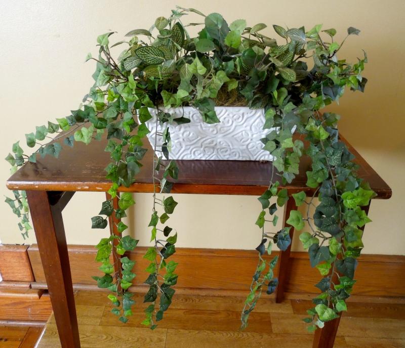 Trailing ivy plant. Made of poly. Real Home planter. Planter is 9"L x 5" W x 4".