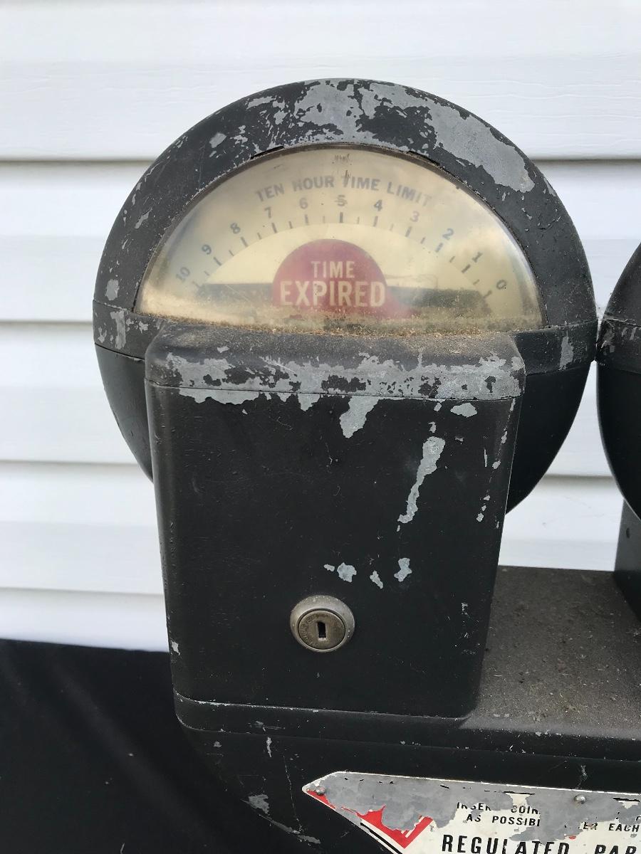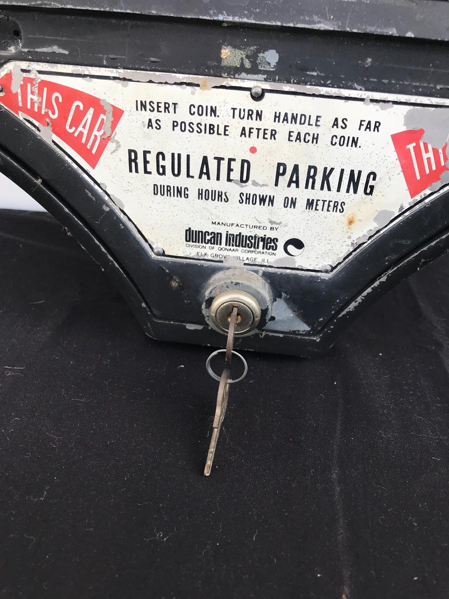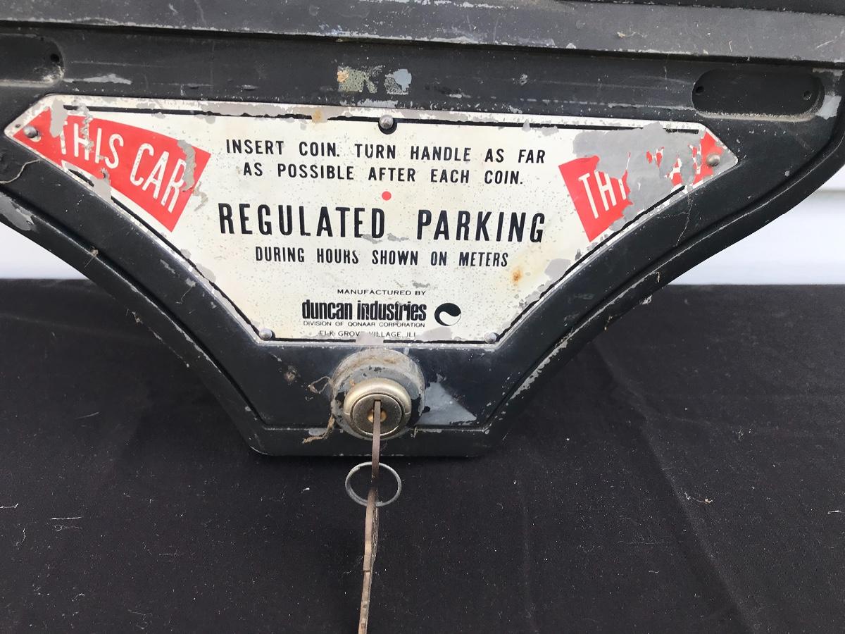 Vintage cast iron double headed parking meter by Duncan Industries - with key. The pictures show condition, measurements if taken, and what is included in the lot. Due to the large amount that we photograph and the time frame, we are not always able to take measurements. All items unless noted, are pre-owned and have been used. If you purchased furniture, you must bring help. We do not allow one person to carry large furniture out on their own. Bring help, tools and a truck for the safety of our client’s homes, and your personal safety. Company policy. Thank you.