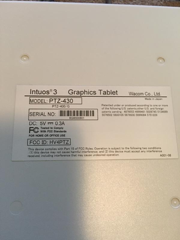 Wacom graphics tablet model # PTZ-430 with mouse, driver and two Adonit Jot Pro disc stylus. Unit powered on but was not tested.