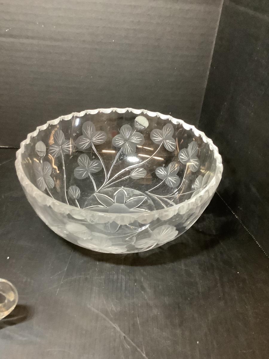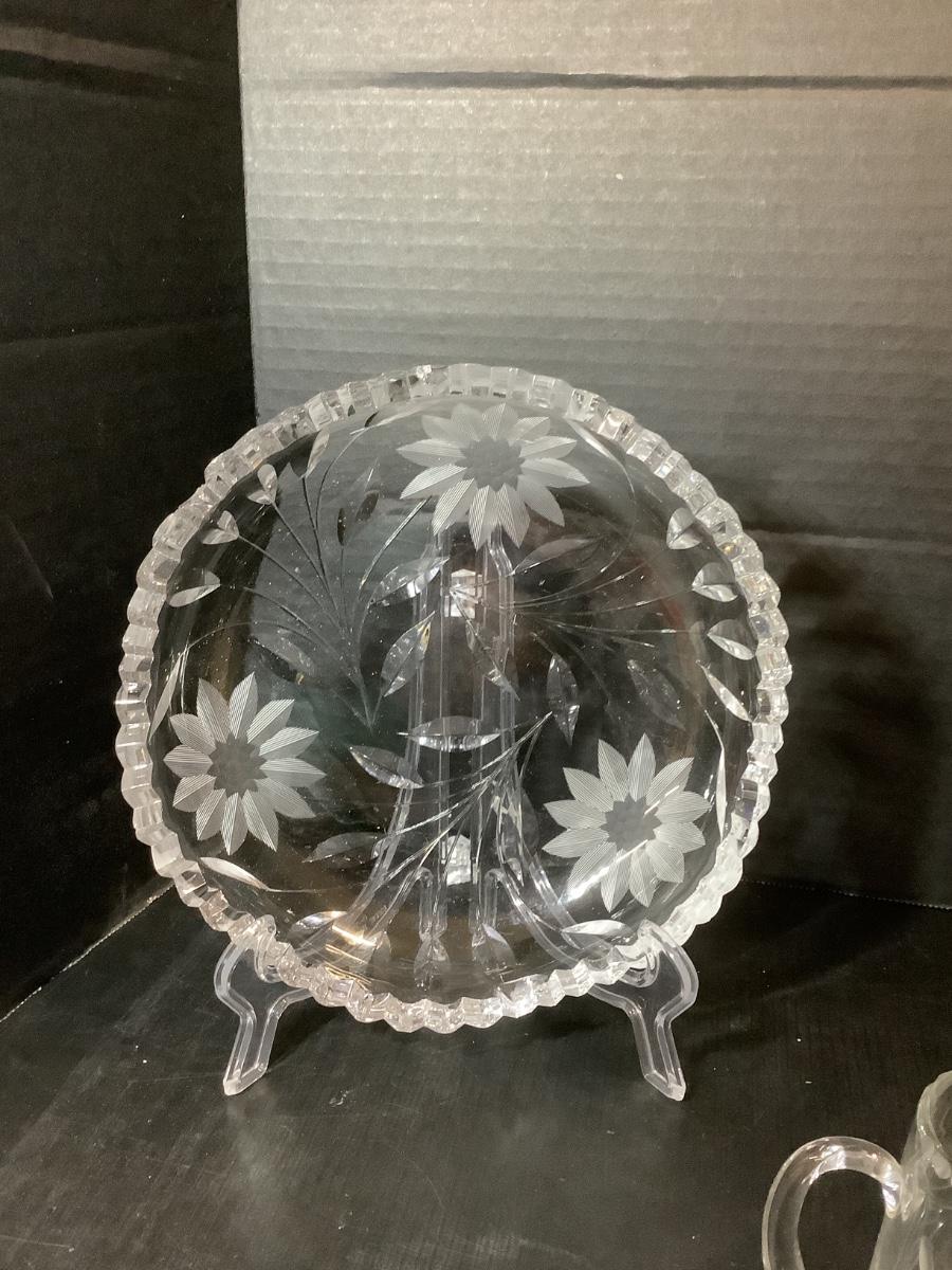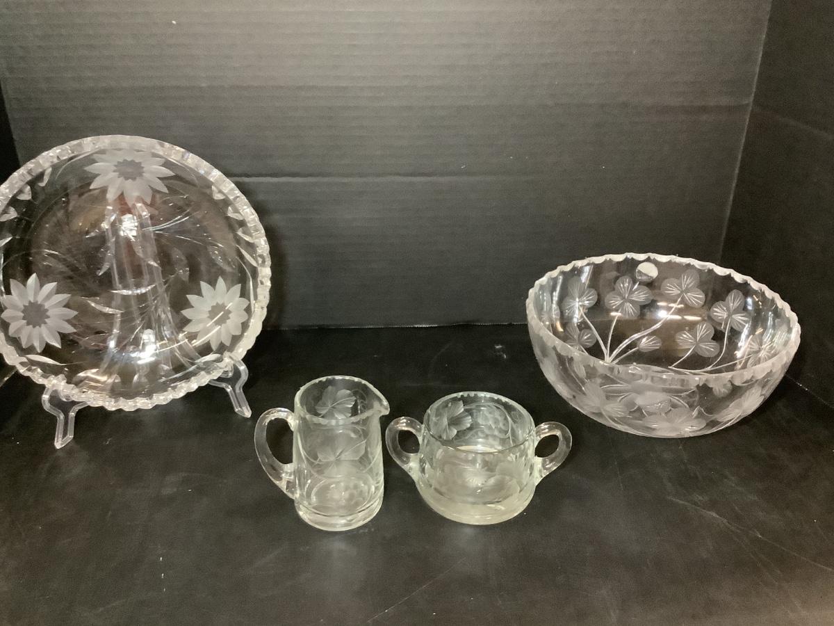 Lot 862. Pressed Glass Cream/Sugar, Etched Press Glass Bowls